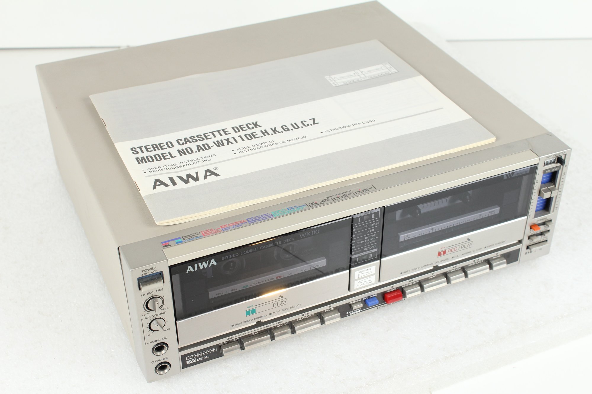 Powers on but playback, RW and FF does not work on either deck. Comes with User Manual and comes with a free tape...Billy Joel - Greatest Hits Volume III.