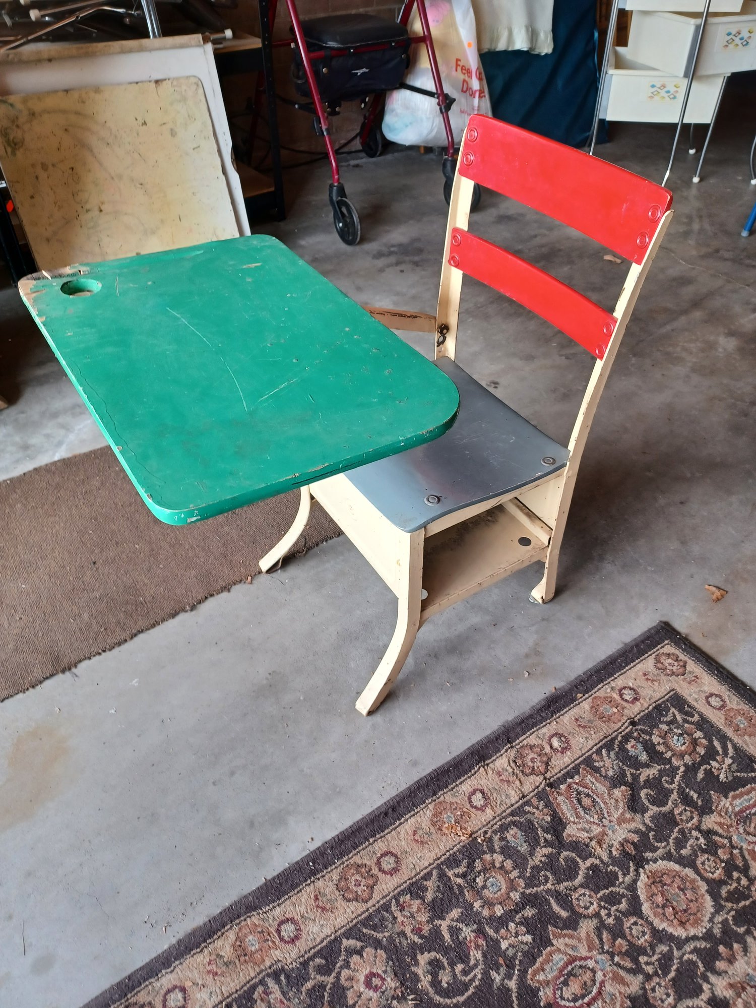 Can you believe that they made children sit in this antique torture device for 8 hours a day? No wonder old people are so mad at everything. I would be too if my back was permanently damaged by this awful thing. But this is a wonderfully preserved piece of history and should be on display in your home or museum. If you are lucky or rich enough to be the winning bidder of course. 28 inches high, 26 3/4 long and 20 1/2 inches wide.