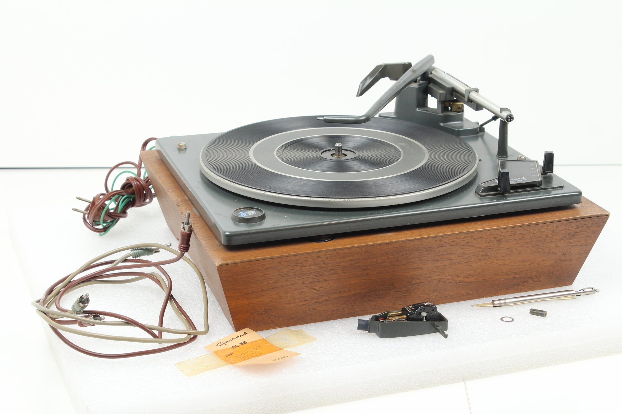 Platter turns very slow, no other testing done. Head shell is broken off but does include the head shell with a Shure M3D cartridge in it. Comes with audio cables, drop spindle, misc parts and SN tag. Has original box but it's in bad shape.