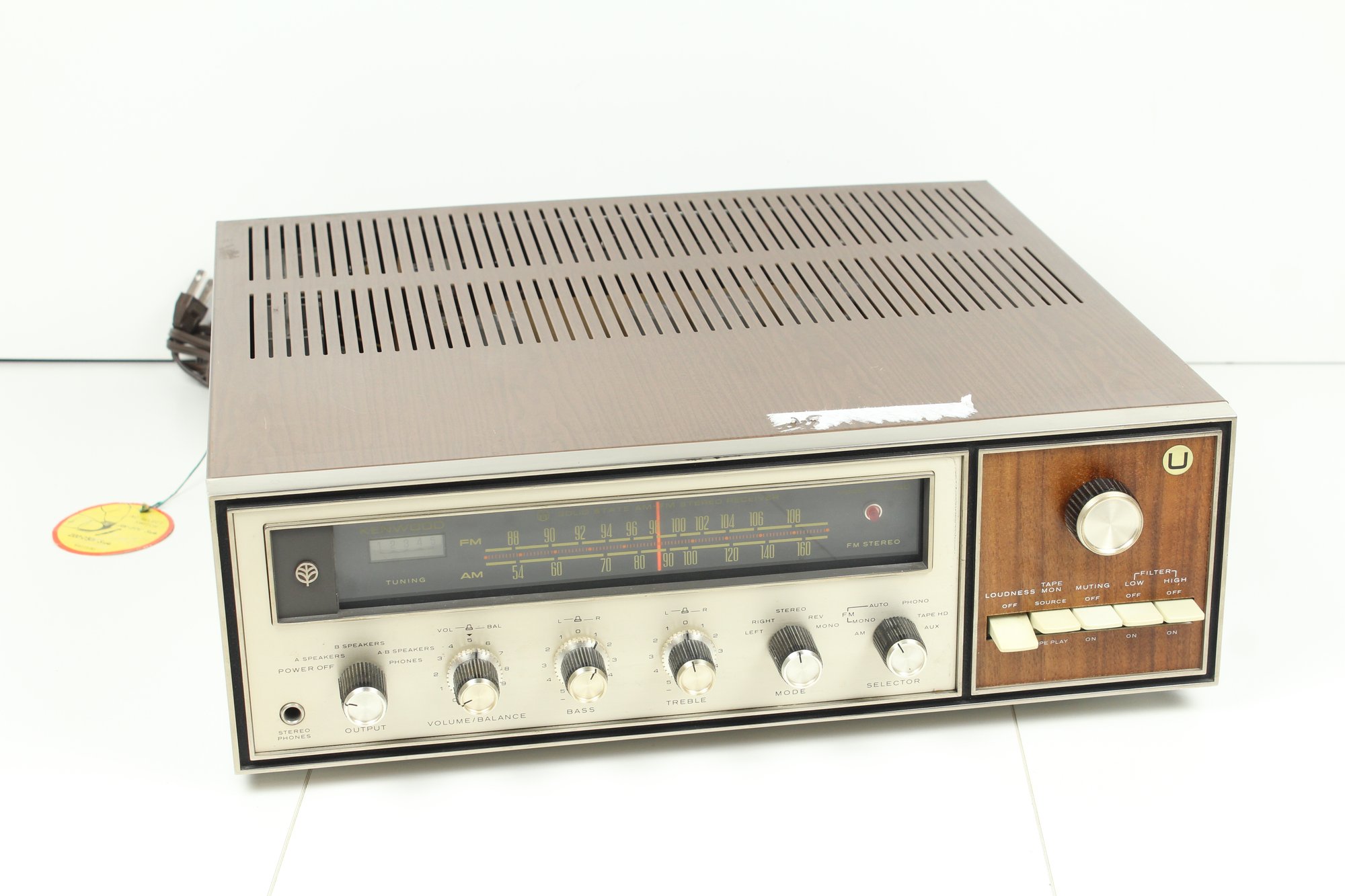 Powers on, no sound from the speakers. Tuning meter works when tuning the dial. One loose foot but it is still attached. Has original tag on the power cord.