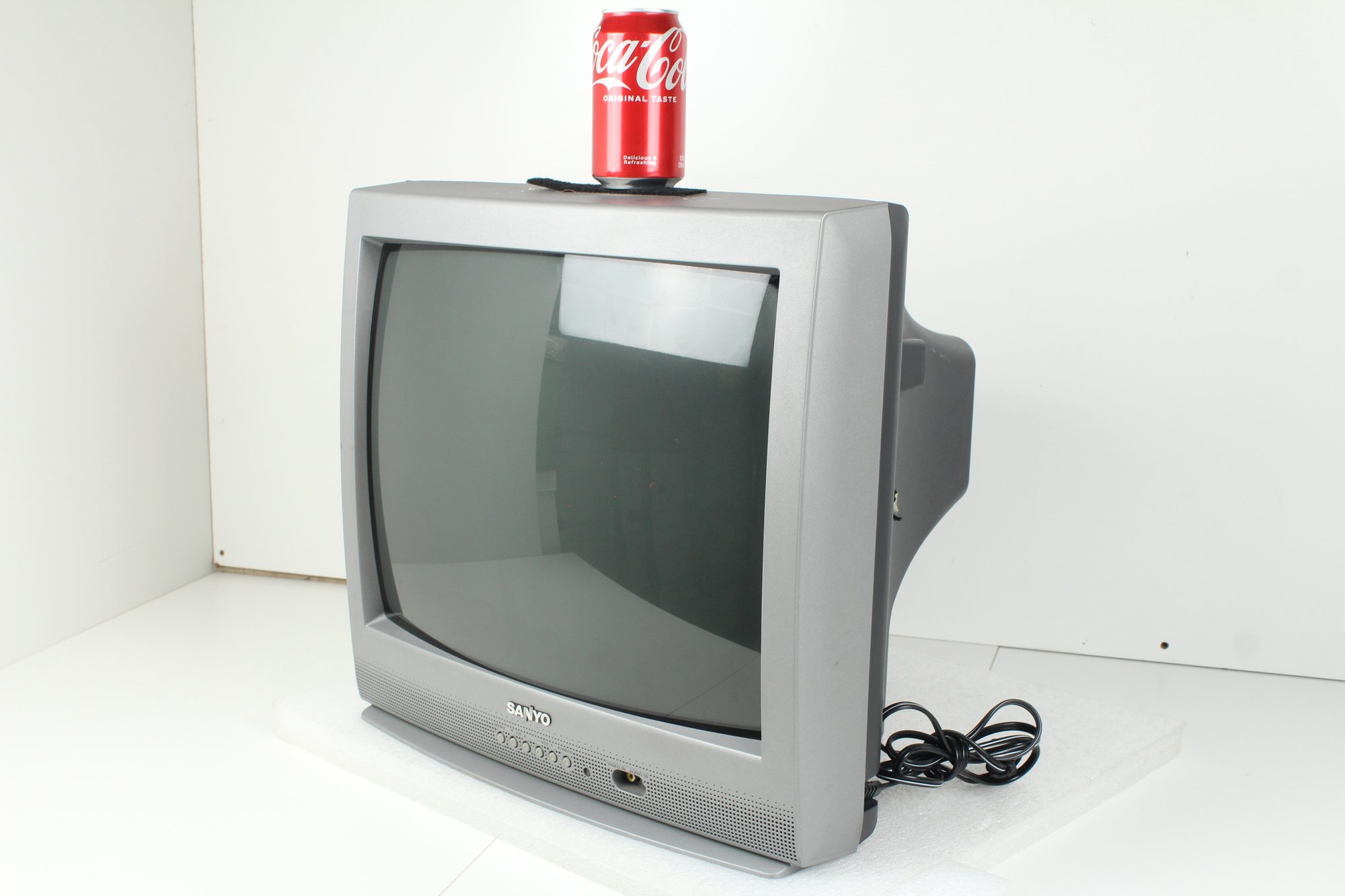 TV works using the coax input but we could not switch to the AV input without the remote. No remote included. Screen measures 20 inches diagonally. No Shipping