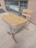 You know how sometimes you will find an old love note in a record album sleeve or on the inside cover of a book. Well this is the biggest and heaviest vintage love note you will ever have in your collection. Steve and Joan have proclaimed their love for each other permanently on the wooden top of this desk. The inscription is pretty deep and no way you are sanding this out, it's there forever...like their love. Where are Steve and Joan now I wonder? Judging by the age of this desk probably dead. That is sad but this desk can be yours if you can outbid everyone who collects giant love notes. 32 inches long, 23 3/4 inches wide and 28 inches high. Steve + Joan 4 Ever