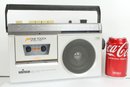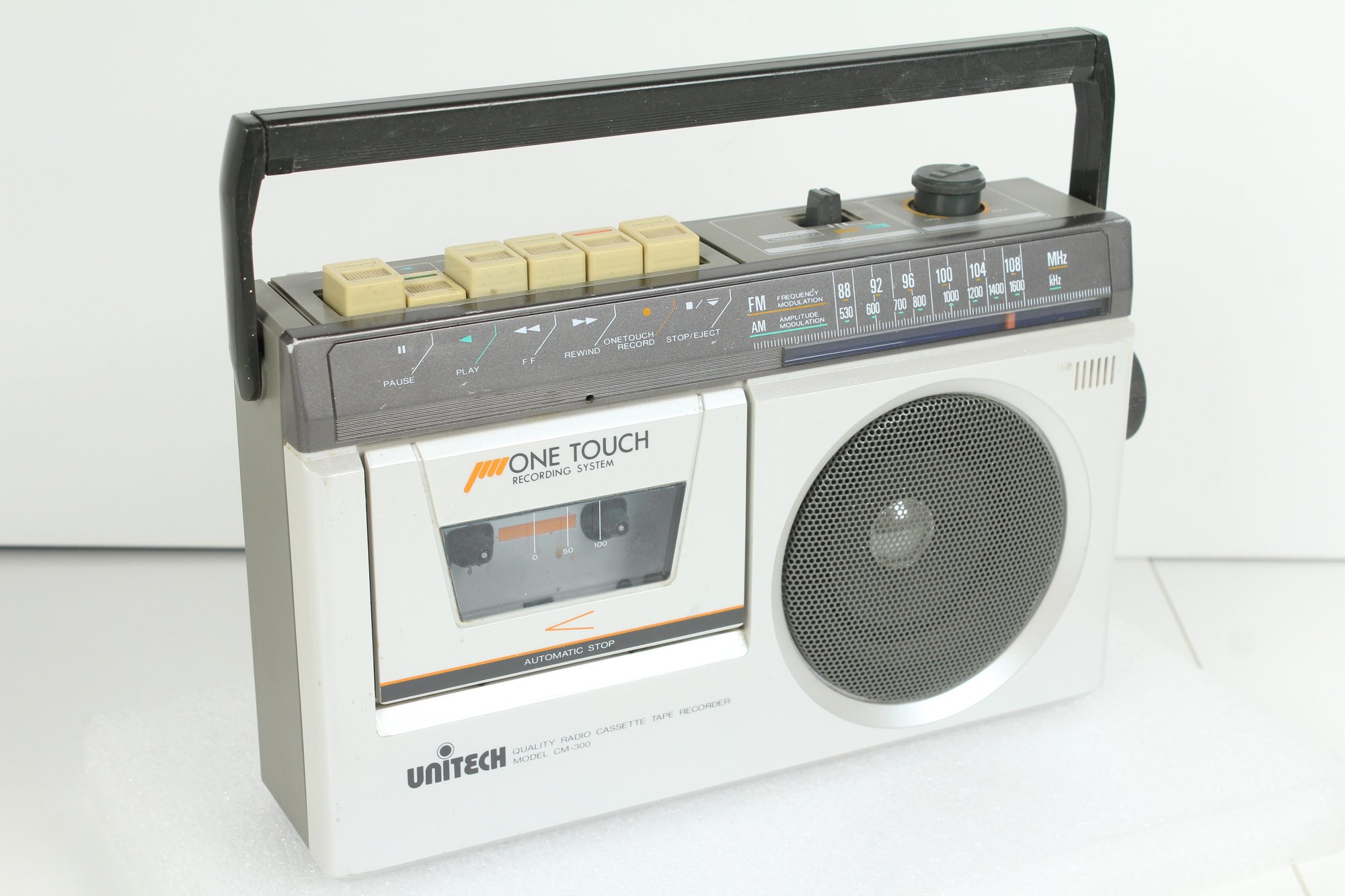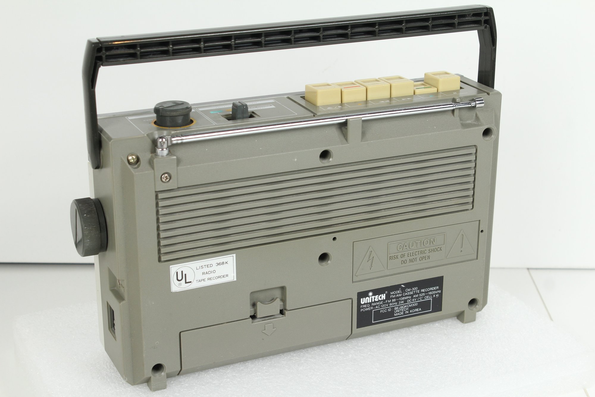 AM is working great, FM works but has weak reception and very low volume. Tape player does not work at all. Can take batteries or power cord, neither one is included.