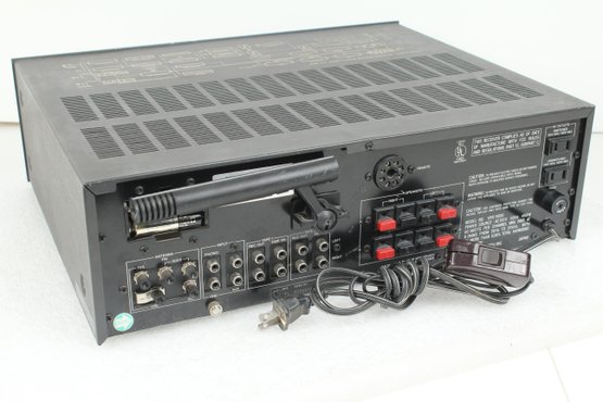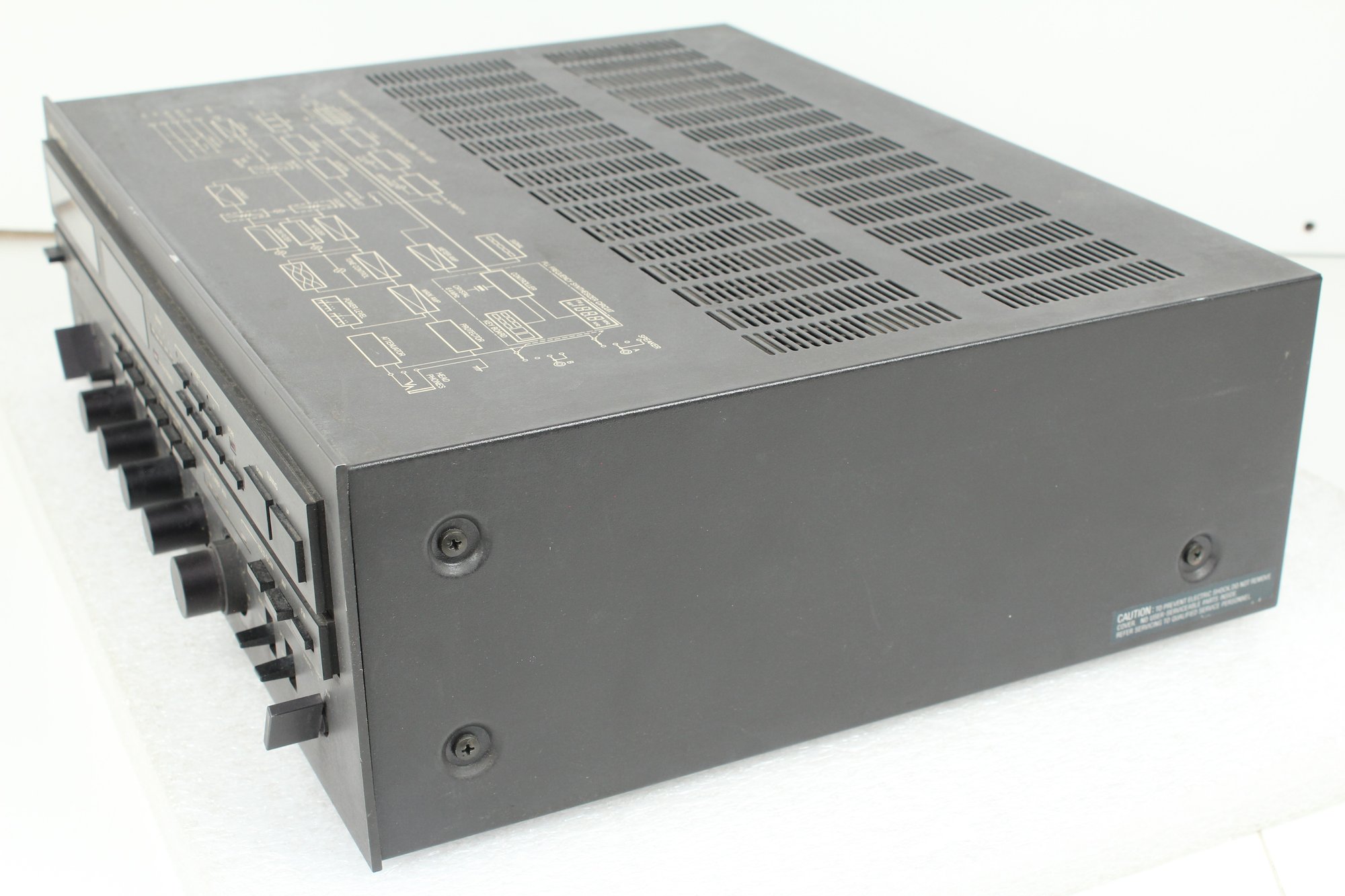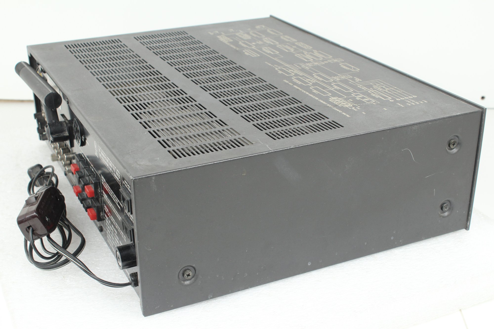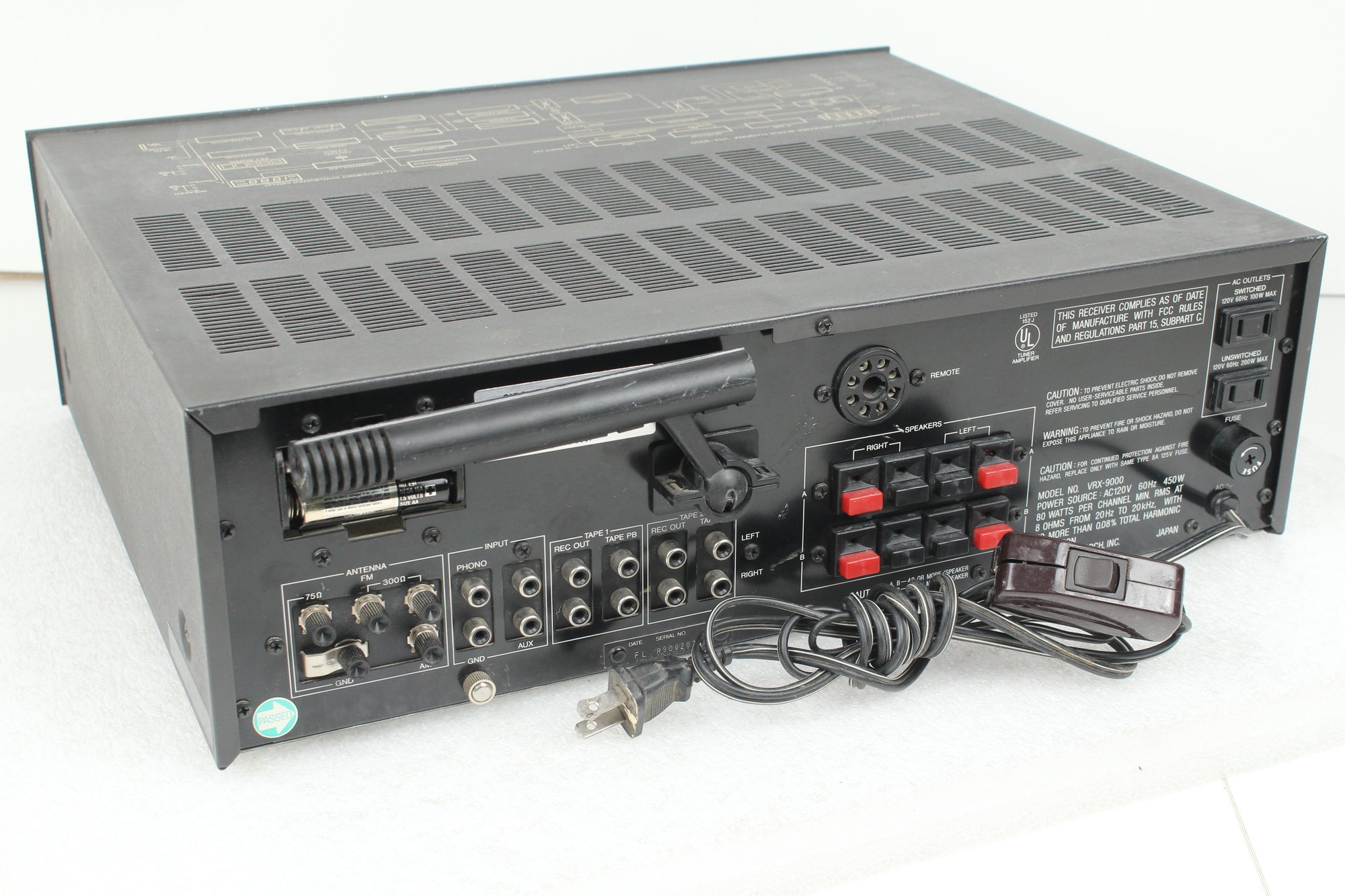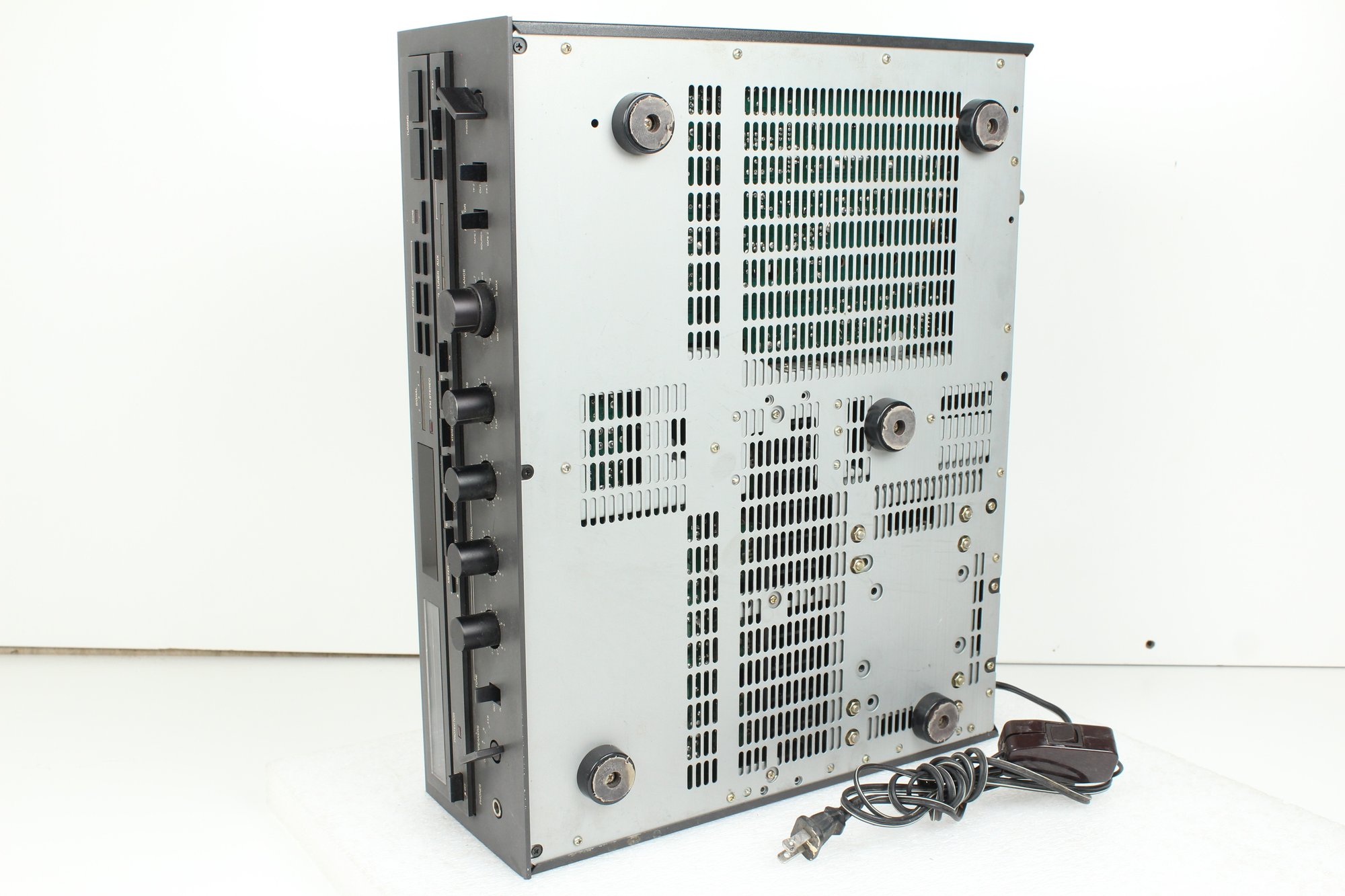 Has a bad power switch and there is a power switch added to the AC cord. Powers on but there is no sound from any input. No Shipping