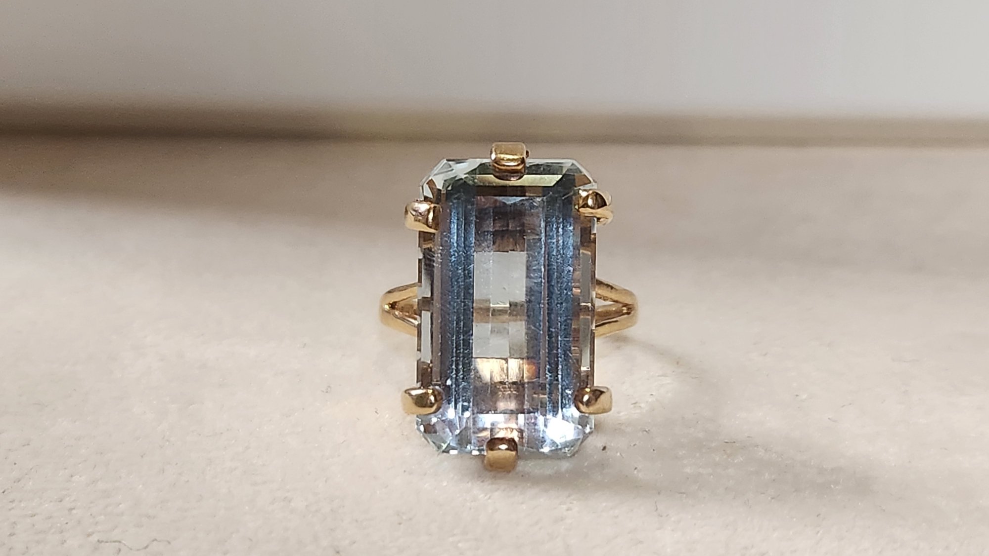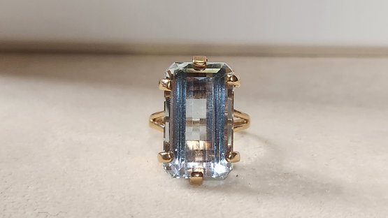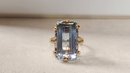 Stunning massive 35.66 light sky blue emerald cut in solid 14k gold