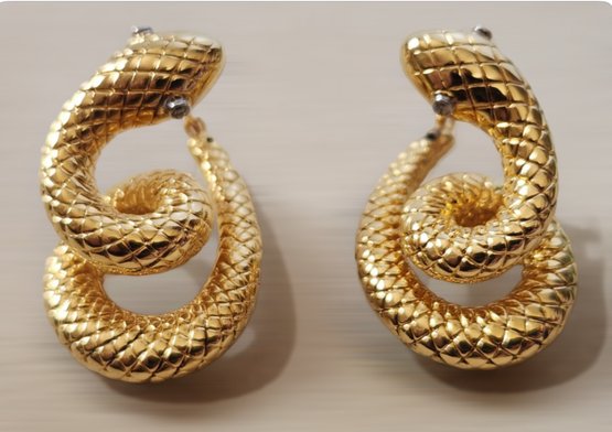 Beautiful antique Victorian era diamond coiled snake earrings in solid 14k gold