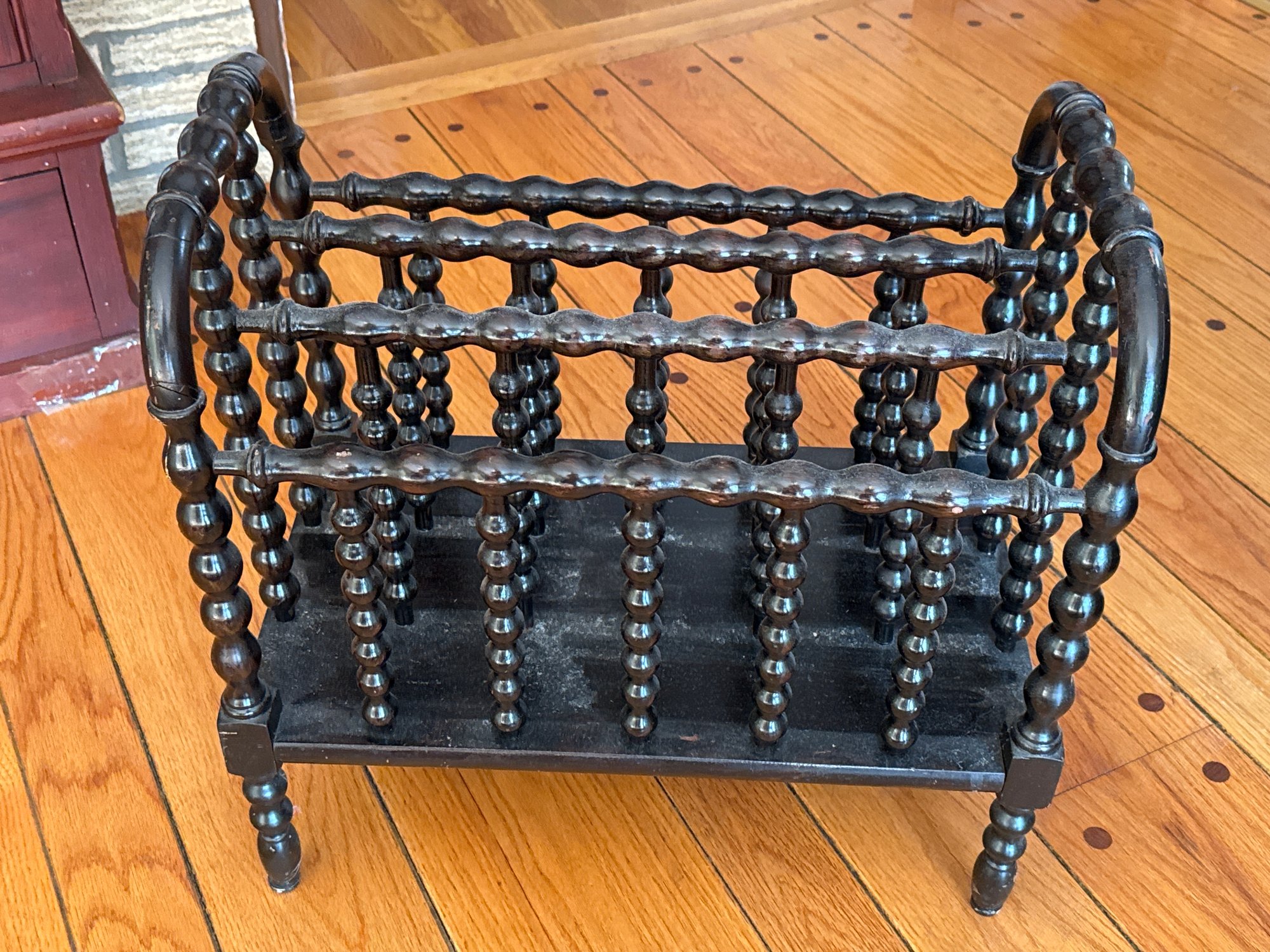 Antique Victorian Turned Wood Spindle Magazine Rack Holder