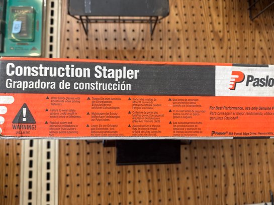 The Paslode PowerSet Construction Stapler is a lightweight and versatile tool built for heavy-duty construction tasks. Featuring an adjustable air deflector, quick-clear functionality, and a two-finger trigger, this stapler ensures ease of use and optimal performance. The ergonomic rubber grip handle offers comfort and control, making it ideal for professionals and DIY enthusiasts. Designed for precision and durability, this stapler is perfect for framing, sheathing, and other construction applications.