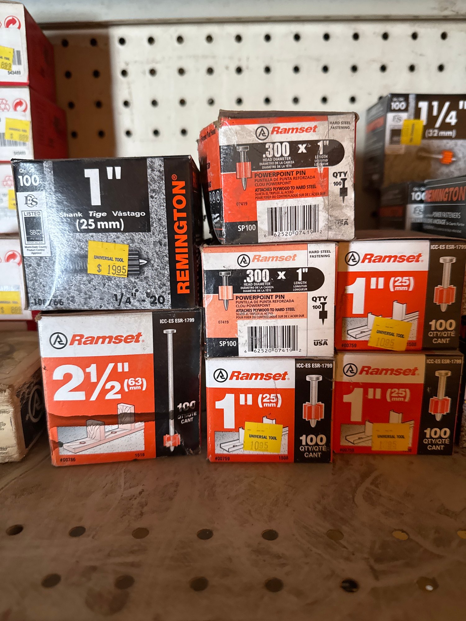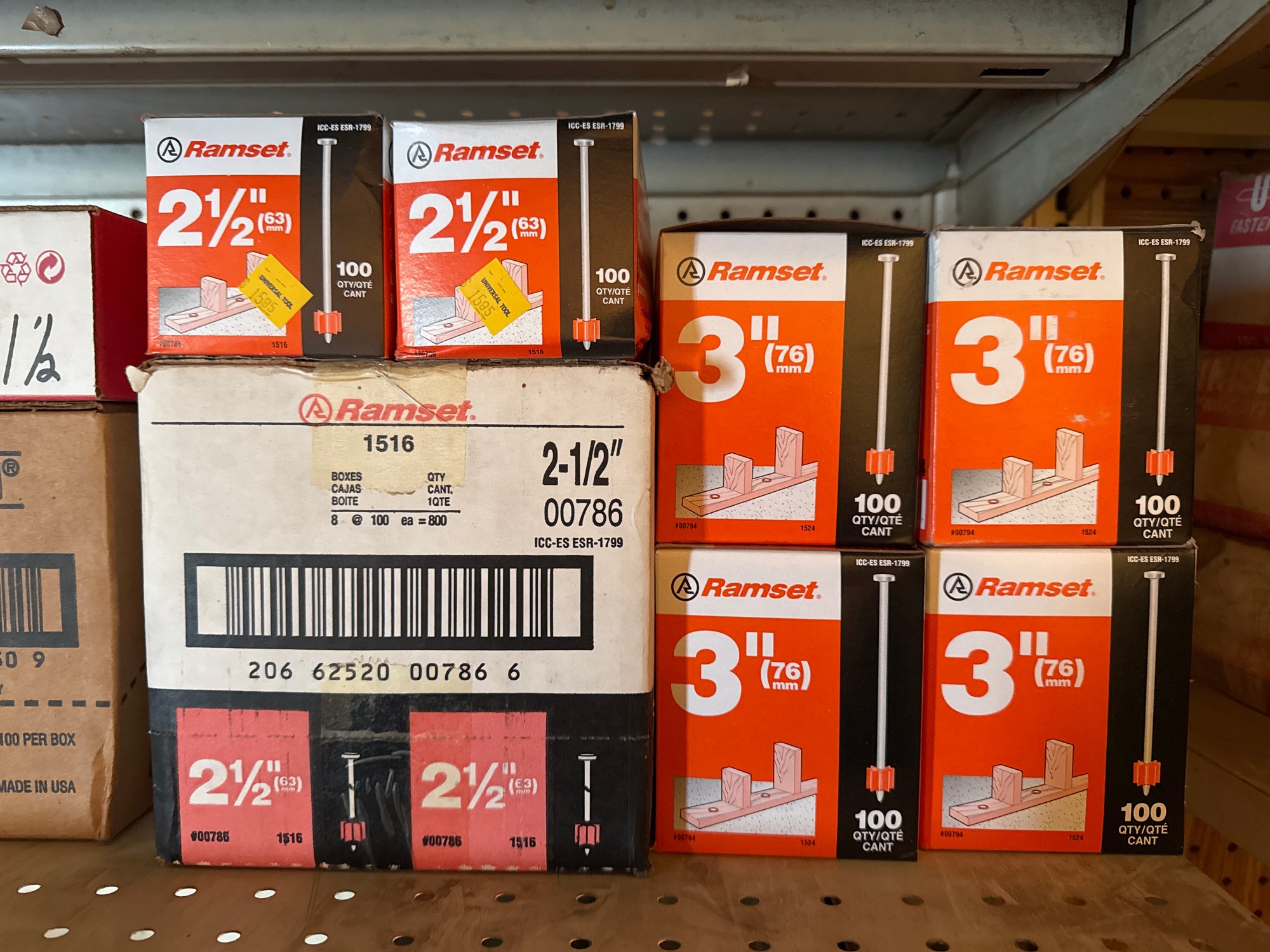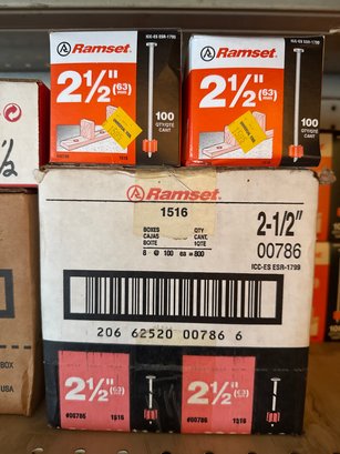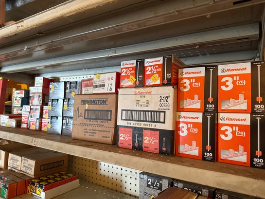 Assorted Nails For Powder Actuated Nail Gun - Entire Shelf - 56 Boxes Total