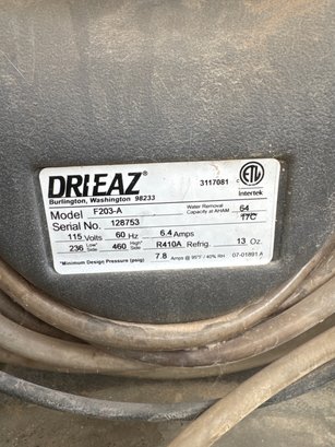 A high-performance Dri-Eaz DrizAir 1200 professional-grade dehumidifier, designed for efficient water removal and humidity control. With a capacity to remove up to 64 pints per day, this reliable unit features an advanced digital console for precise operation and monitoring. Ideal for restoration projects, flood cleanup, or maintaining dry conditions in basements and workspaces.