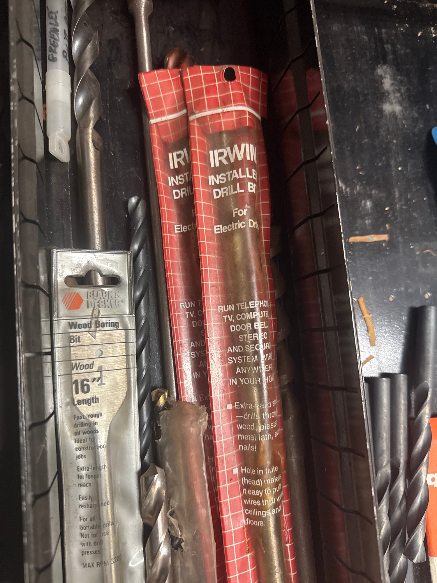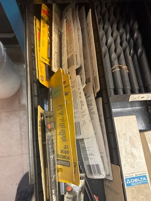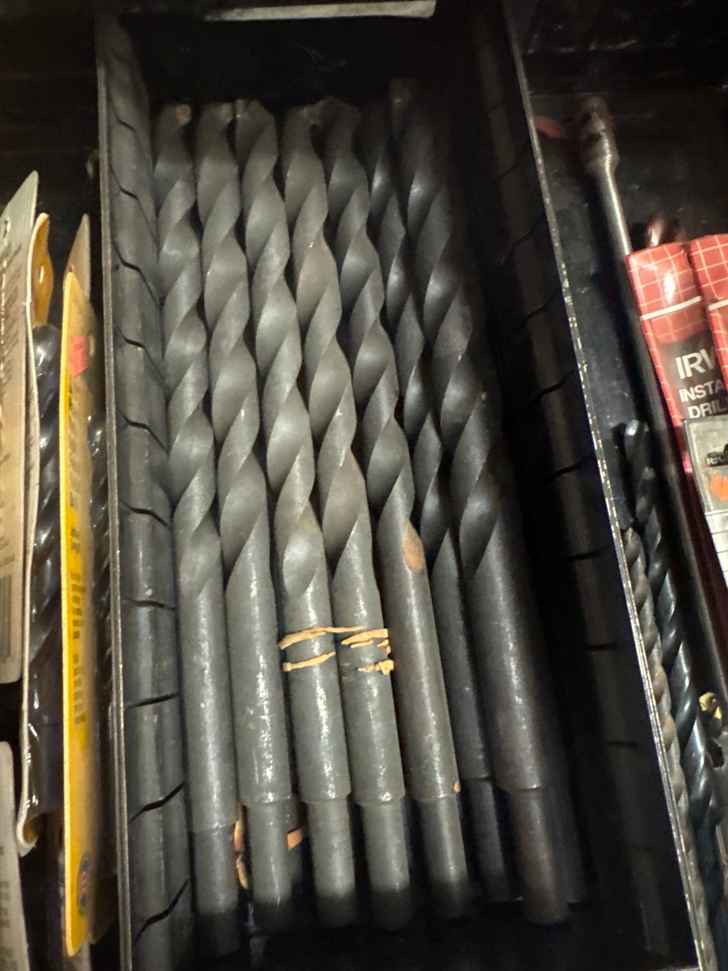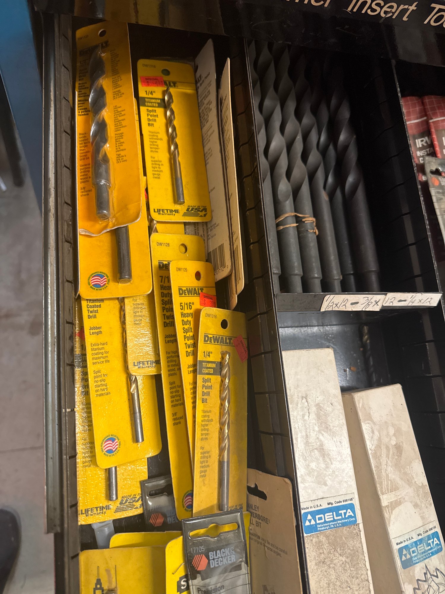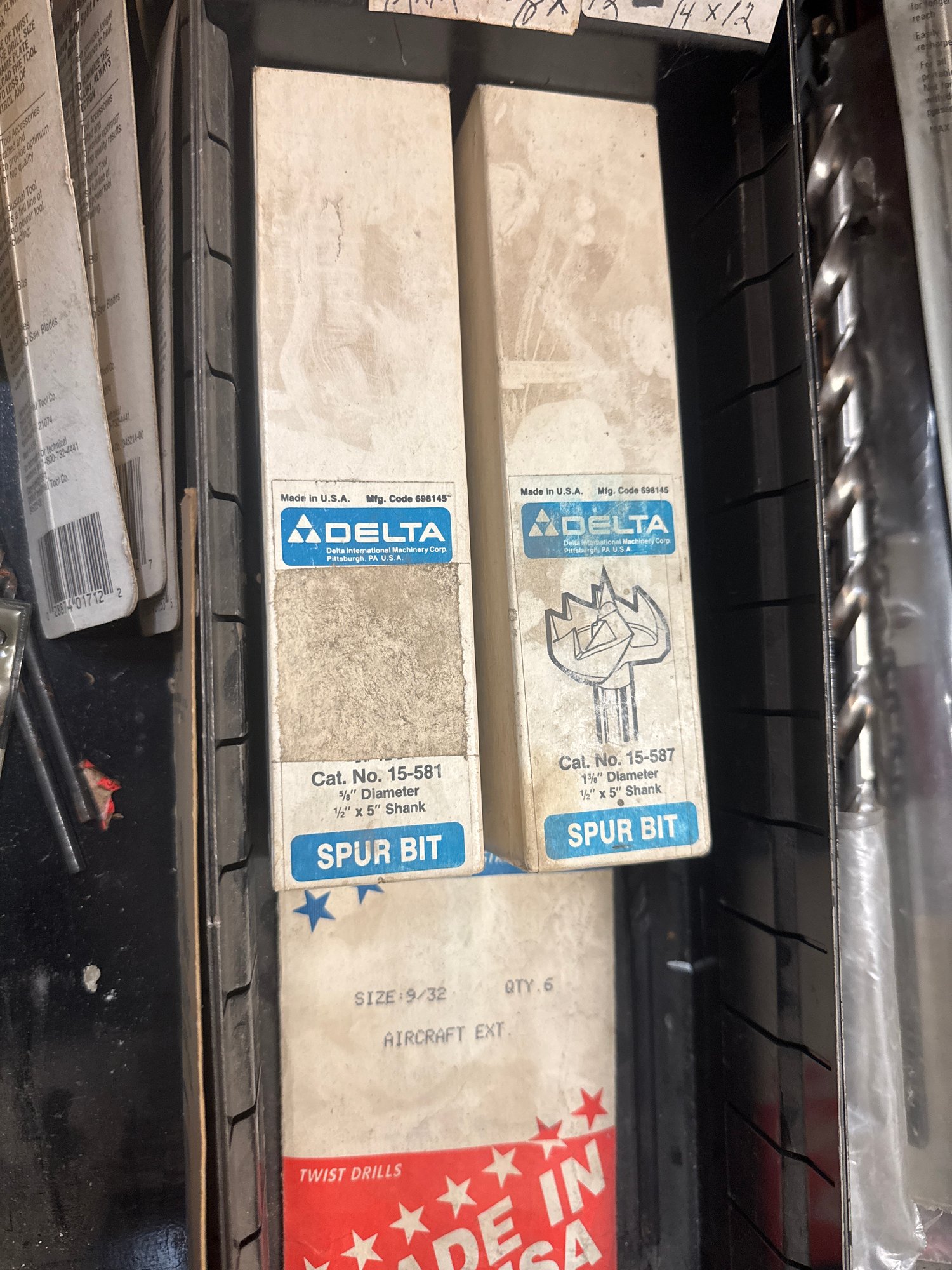 his lot features an extensive assortment of drill bits and accessories, including premium brands like Bosch, Irwin, Black & Decker, and Delta. Items include a variety of wood boring bits, spur bits, titanium-coated twist drills, and high-speed steel bits. Perfect for drilling into wood, metal, and composite materials, this collection provides a range of sizes and types to suit both precision work and heavy-duty tasks. Many items are still in original packaging, ensuring quality and durability. An excellent addition for contractors, woodworkers, and tool enthusiasts alike