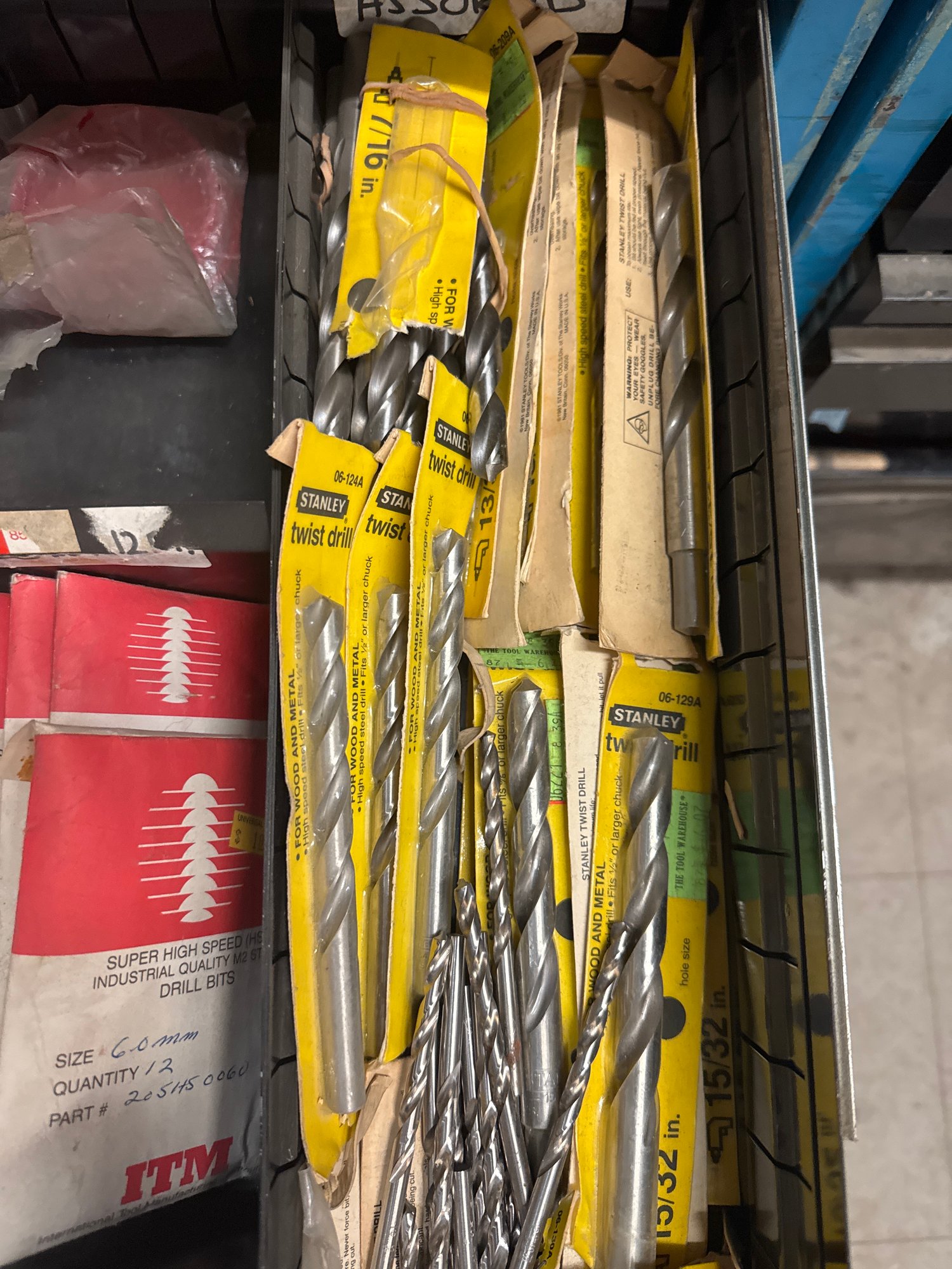 This lot includes a wide array of high-speed steel (HSS) twist drill bits from Bosch, Stanley, and ITM. The collection features sizes ranging from 6mm to 22mm and is ideal for precision drilling through wood, metal, and other materials. With items organized in their original packaging and labeled for easy use, this lot is perfect for professional contractors, machinists, or DIY enthusiasts looking to expand their toolkit.