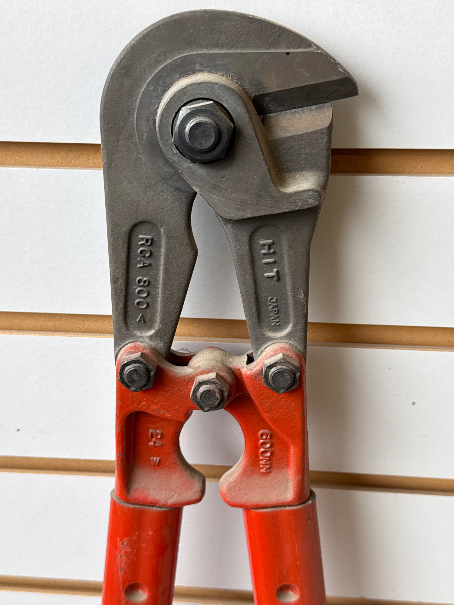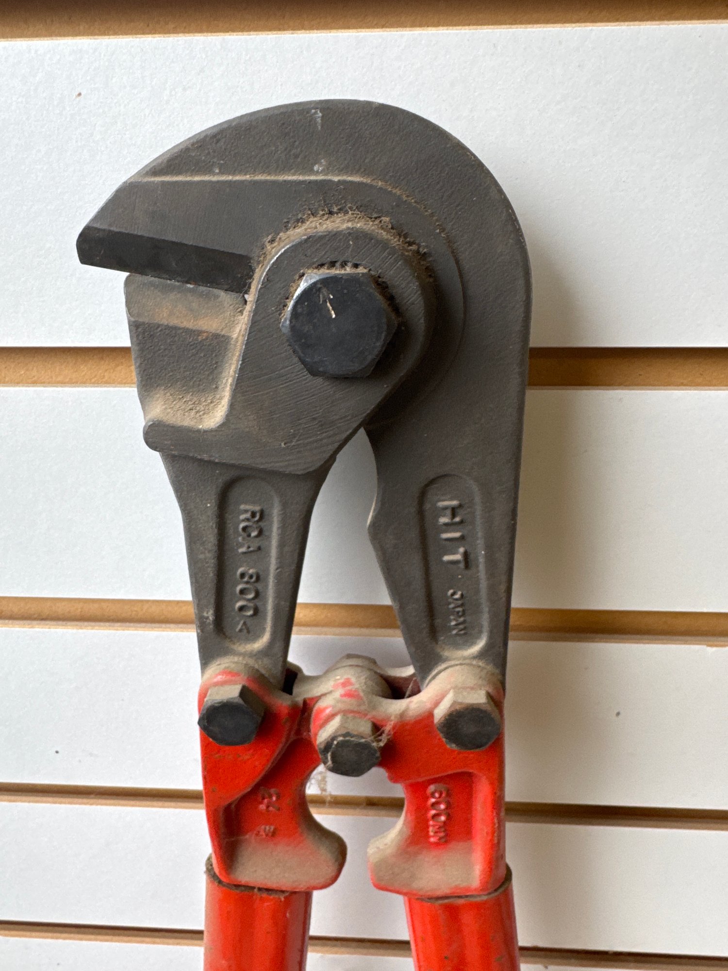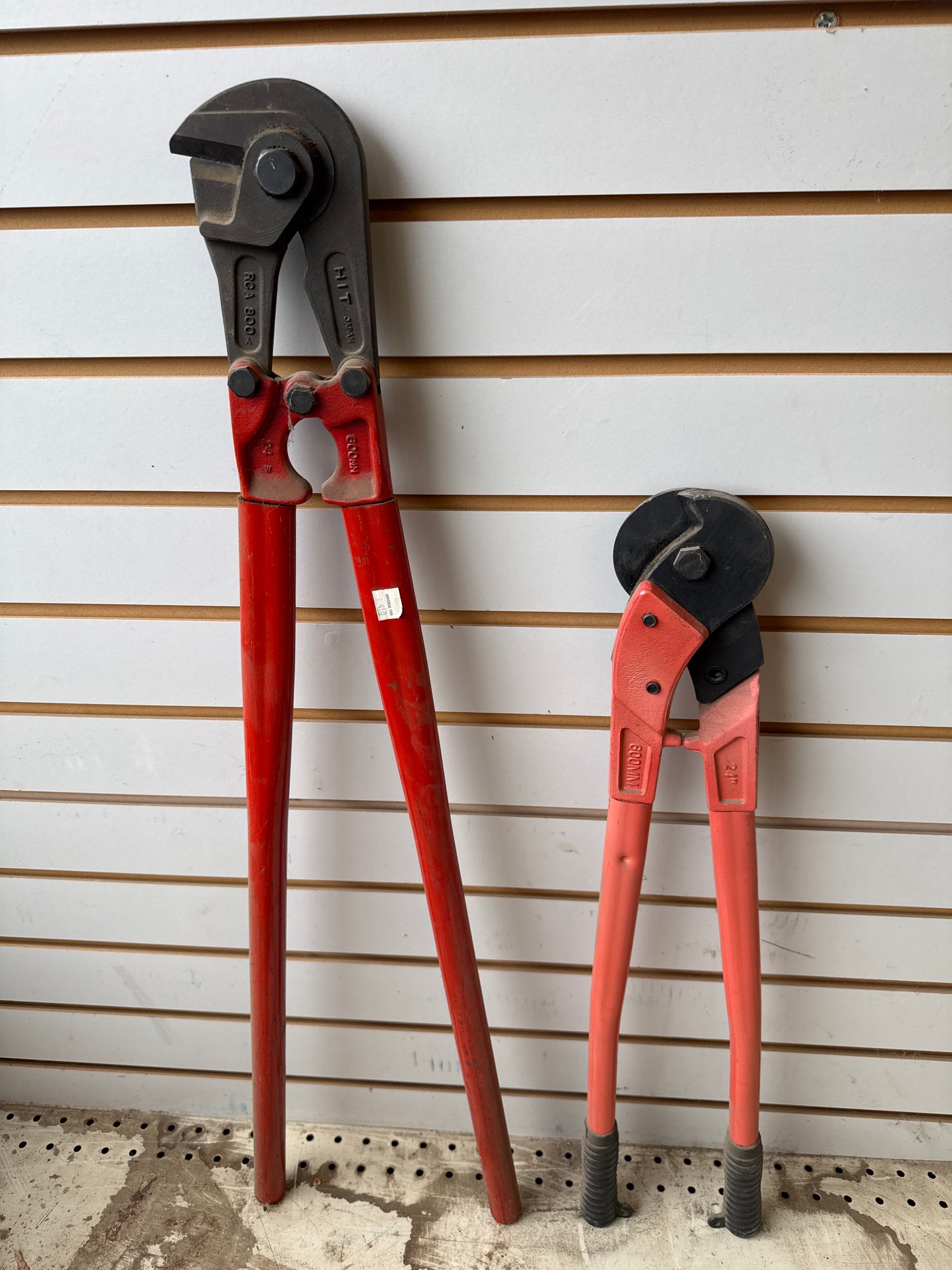 A pair of durable, heavy-duty cutting tools including a HIT RCA-800 bolt cutter with a cutting capacity of 24 inches (600mm) and a compact wire cutter designed for precision cutting. Both tools feature ergonomic grips for user comfort and are ideal for industrial or construction applications