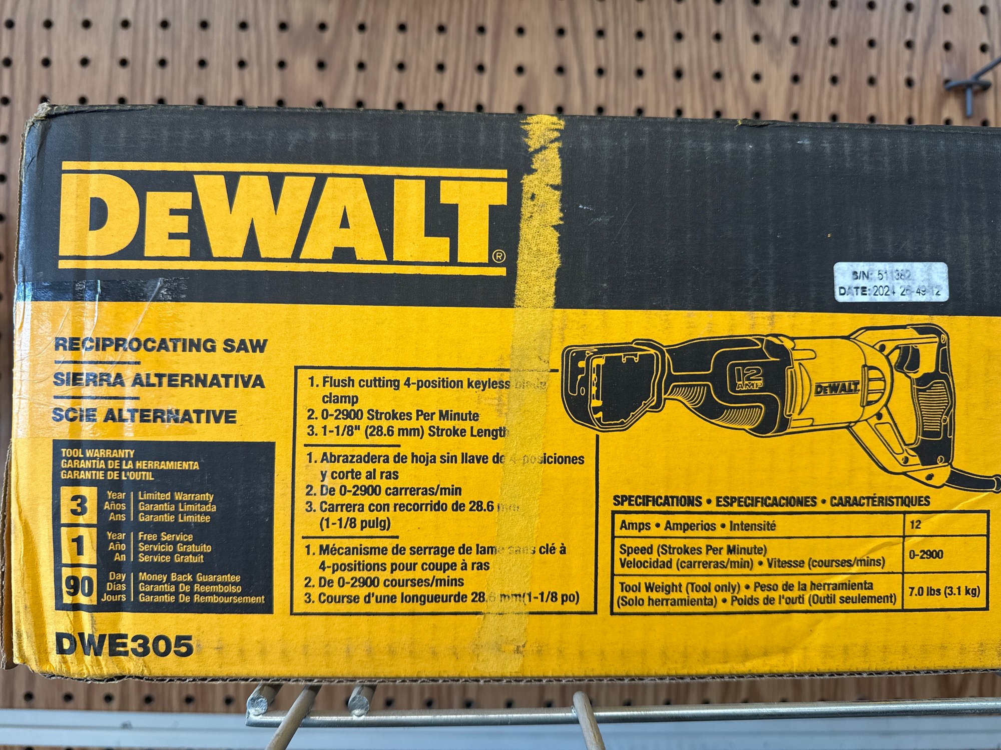 DEWALT DWE305 reciprocating saw, featuring a powerful 12-amp motor and up to 2,900 strokes per minute. Designed with a 4-position keyless blade clamp for flush cutting and enhanced versatility. Lightweight yet robust, it’s a must-have tool for professionals and DIY enthusiasts alike.