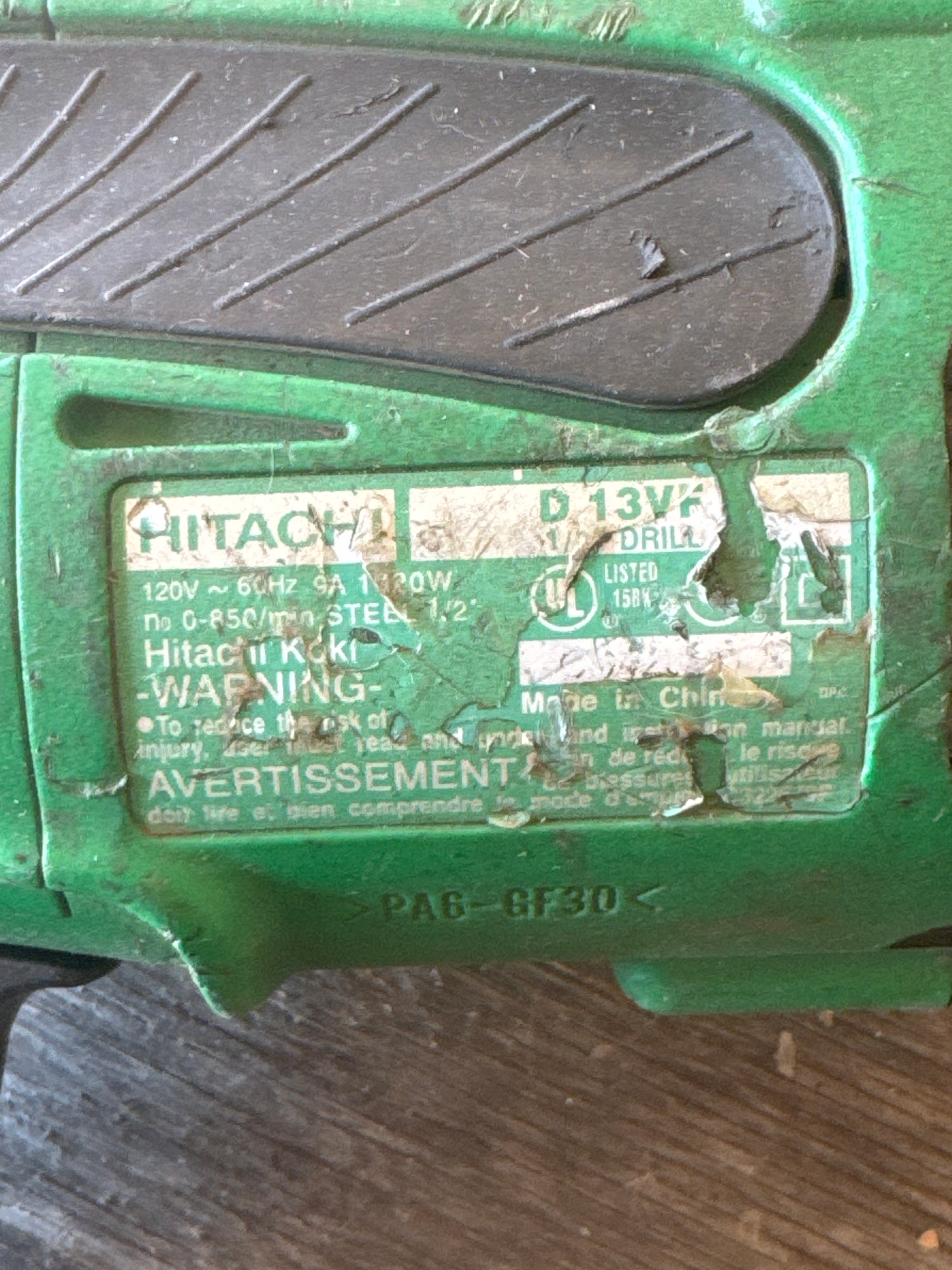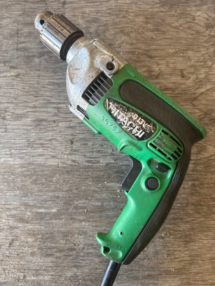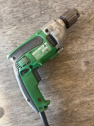 his Hitachi D13VF is a powerful 1/2-inch variable speed reversible drill with a 9-amp motor, designed for high-torque applications such as steel and wood drilling. The durable construction and ergonomic handle make it a reliable choice for professional contractors and serious DIYers. The drill shows wear and usage marks but remains in working condition, ready to handle tough jobs with ease.
