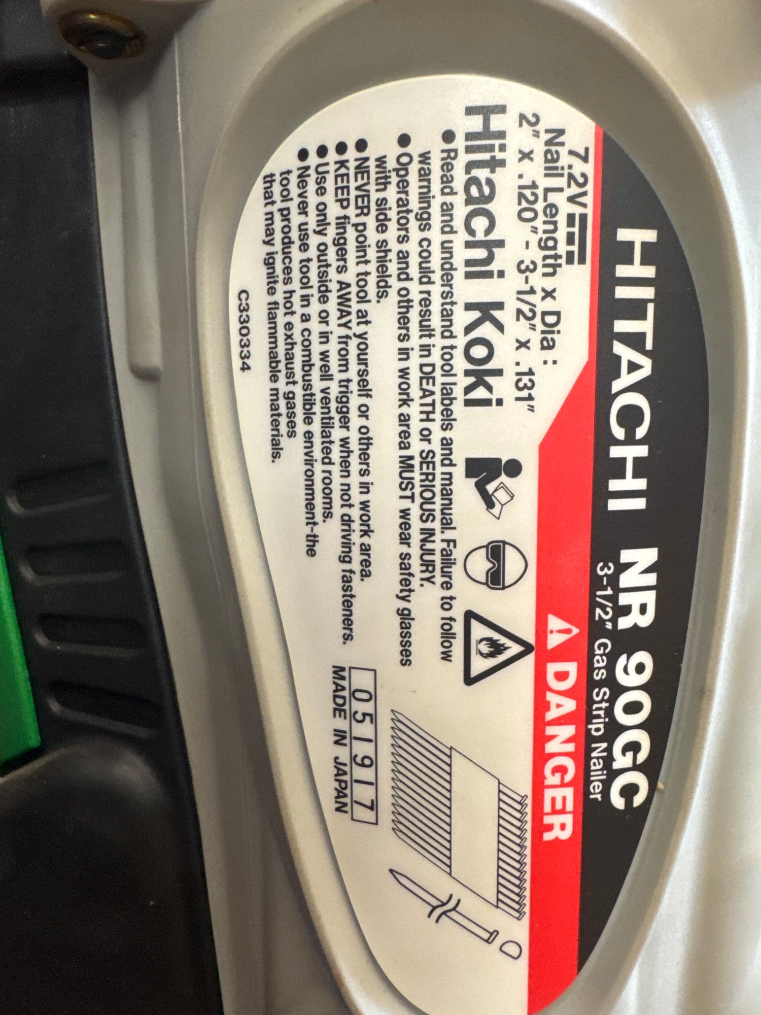 Hitachi NR90GC 3-1/2" Cordless Gas Framing Nailer