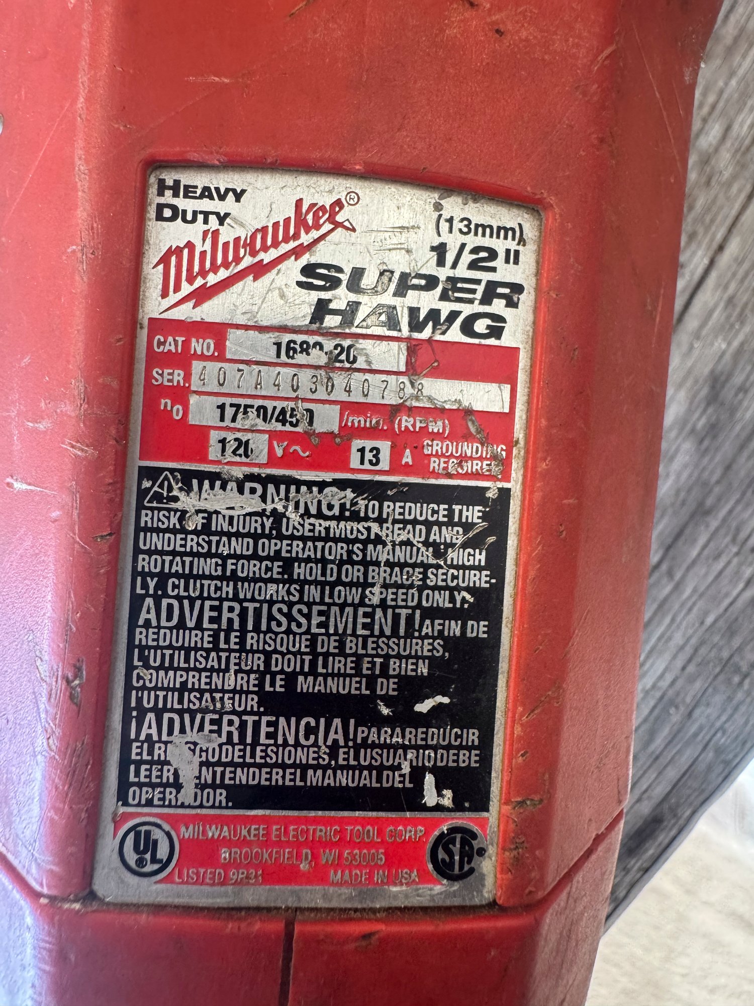 Short Description: Milwaukee 1/2" Super Hawg (Model 1680-20), known for its powerful performance and durable build, features a 13 Amp motor with dual speed setting