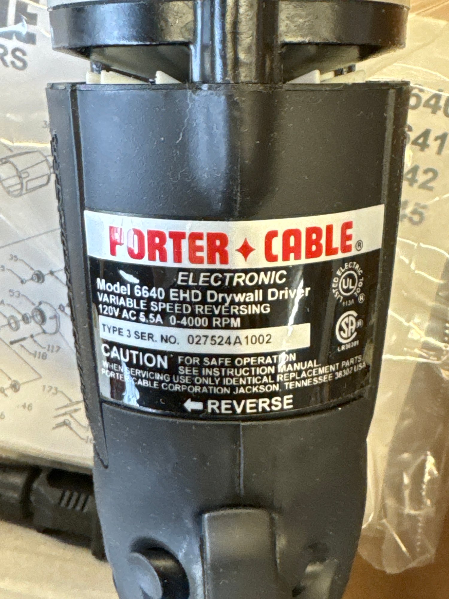 Porter-Cable Screwgun in its original packaging. It is designed for professional-grade fastening and drilling tasks, featuring a compact and lightweight design for easy handling. The item includes the original instruction manual and accessories, making it a complete set ready for immediate use. This tool is perfect for contractors, woodworkers, and DIY enthusiasts looking for reliable performance.