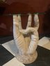 Sculpted resin hand table with glass top circa early 1970’s.