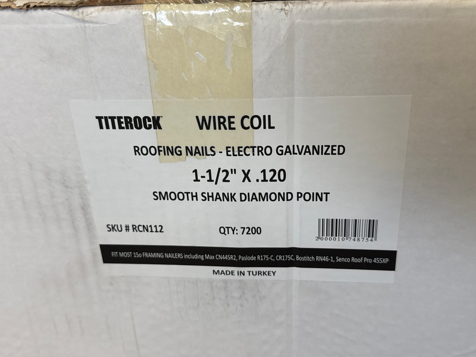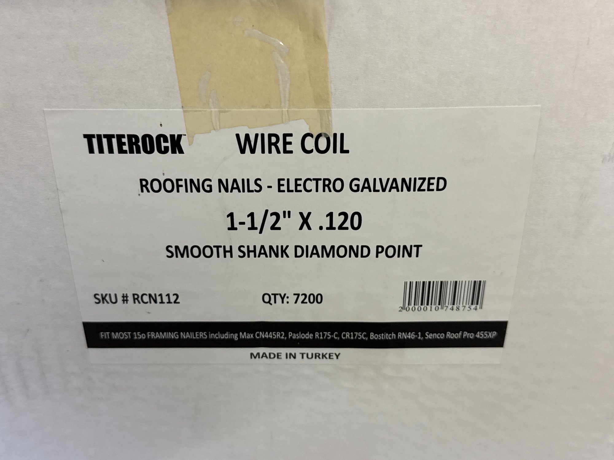 TITEROCK -WIRE COIL -ROOFING NAILS - ELECTRO GALVANIZED 7200 quantity per box