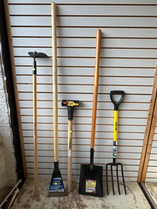 Tuff Stuff 7" Multi-Purpose Scraper, G-Force Pro Sledgehammer & Square Point Shovel, Tru Built Hoe, Pitchfork