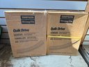 wo boxes of Simpson Strong-Tie Quick Drive screws with collated quick load strips and an included drill bit. Ideal for efficient fastening in construction projects. Both boxes appear to be complete