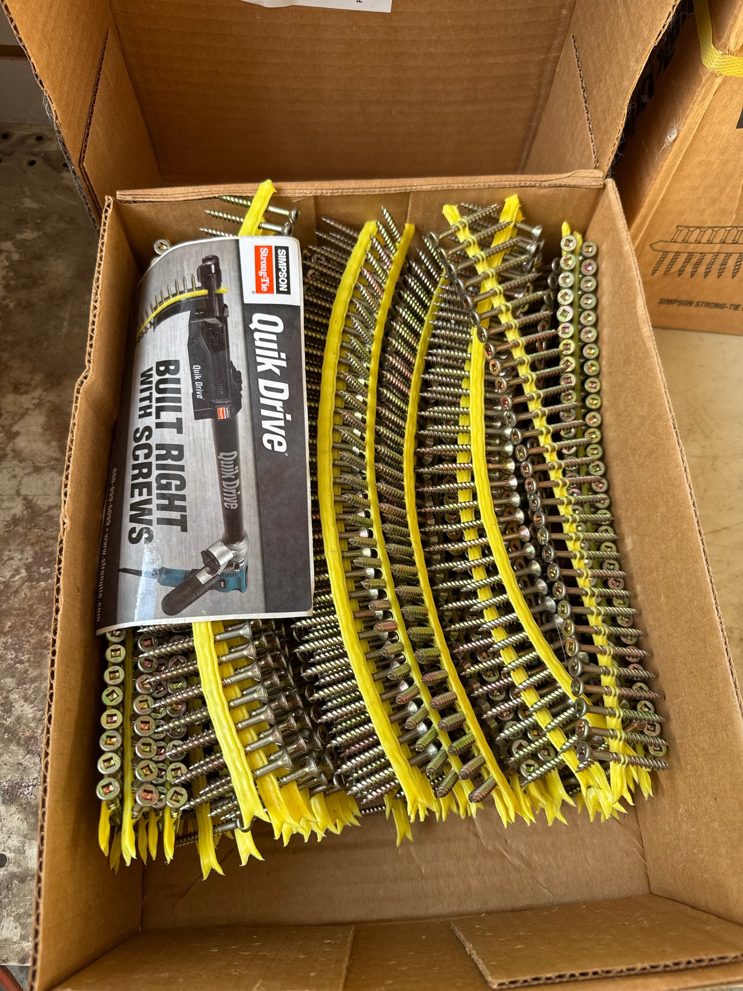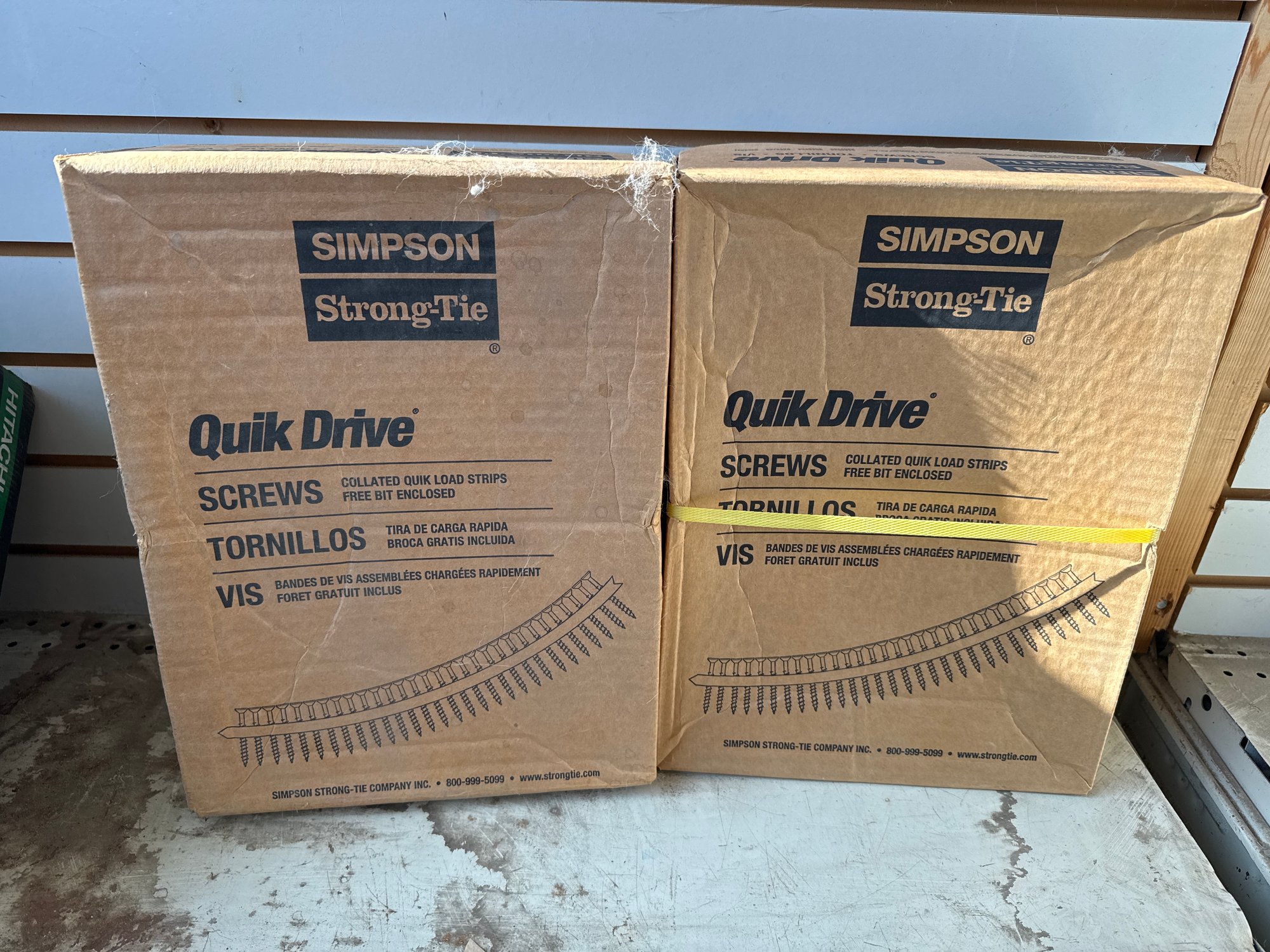 Two boxes of Simpson Strong-Tie Quick Drive screws with collated quick load strips