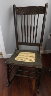 Vintage Rocking Chair - Solid Wood - Caned Seat - Carved Details