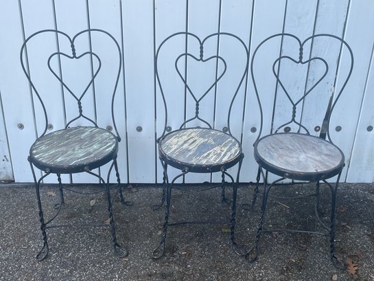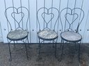 Vtg Wrought Iron Ice Cream Parlor Chair Bar Stool Heart Back Set Of Three
