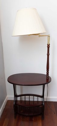 Wooden End Table With Integrated Lamp And Magazine Rack, Brown