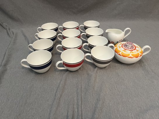 Villeroy & Boch-Anmut Bloom Teacup/Coffee Cup + Sugar Cup + Creamer Cup / 12x Coffee/Tea Cups / 1x - Sugar Cup / 1x - Creamer w/ lid / Perfect Condition