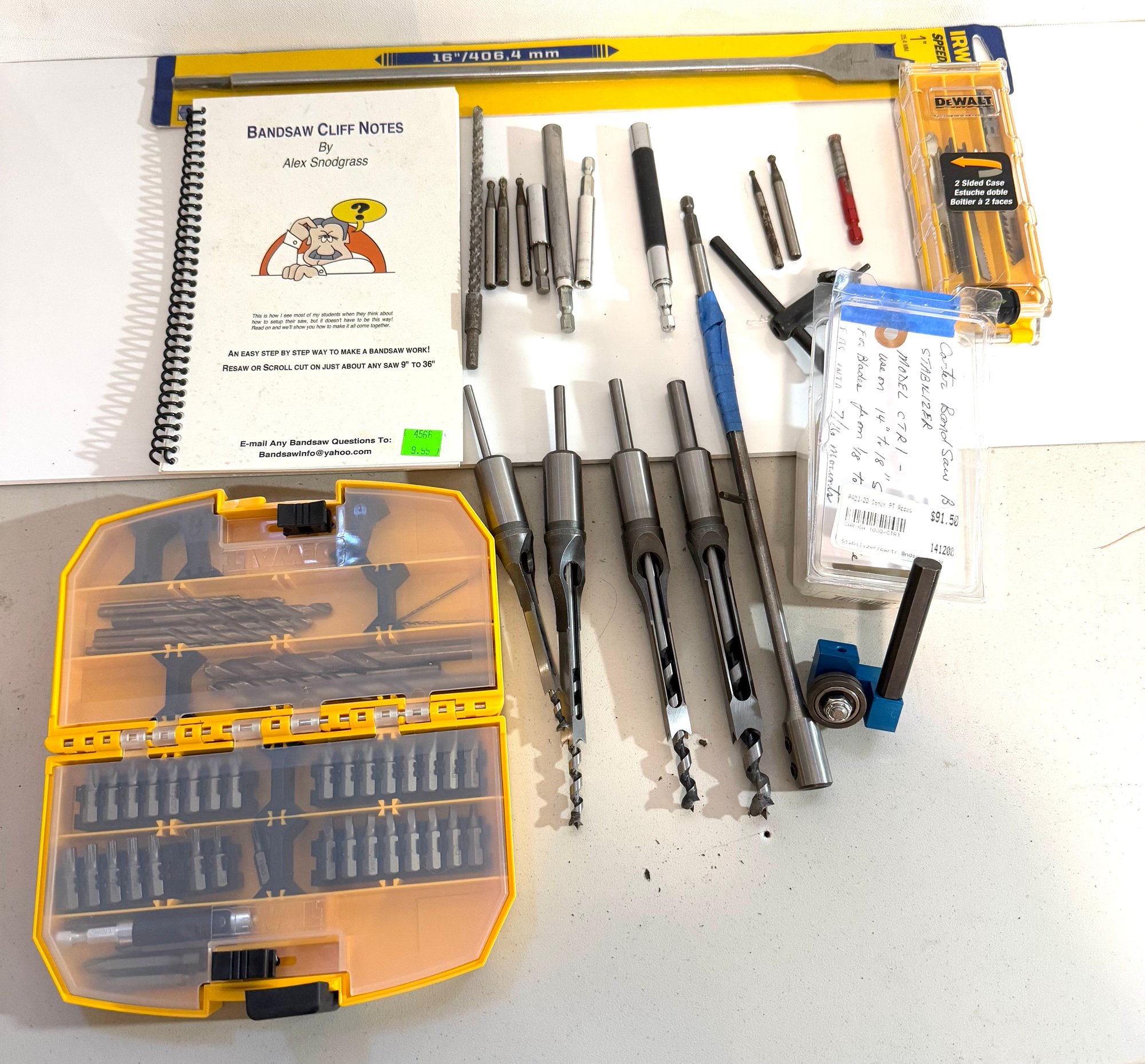 Arter Bandsaw Blade stabilzer, blades from 1/8 to 1 1/4 wide, fits inti 7/16 mount. Use on 14 - 18 inch saws. and a handy book