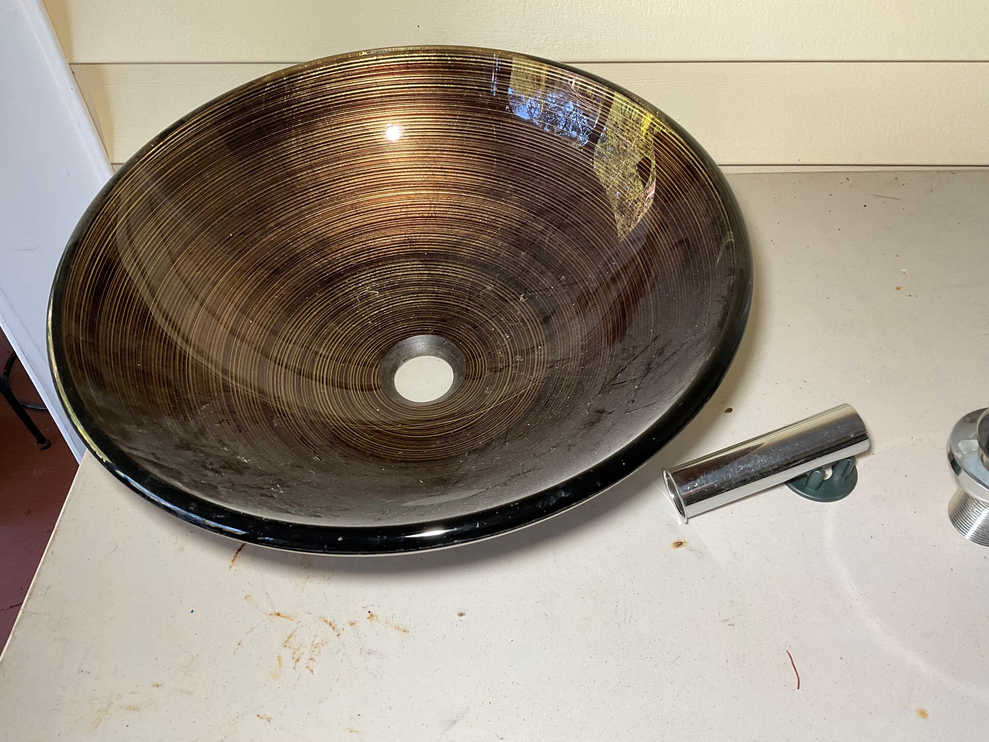 Beautiful Sink designed to sit on top fo counter, includes stopped hardware