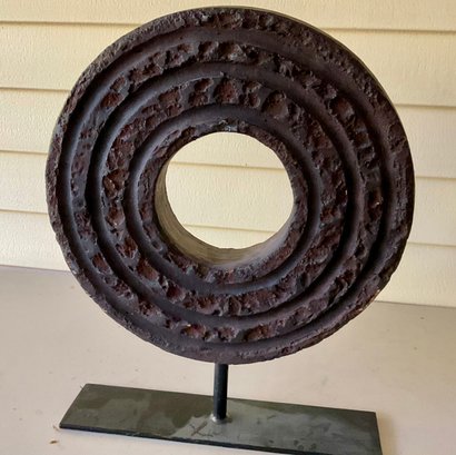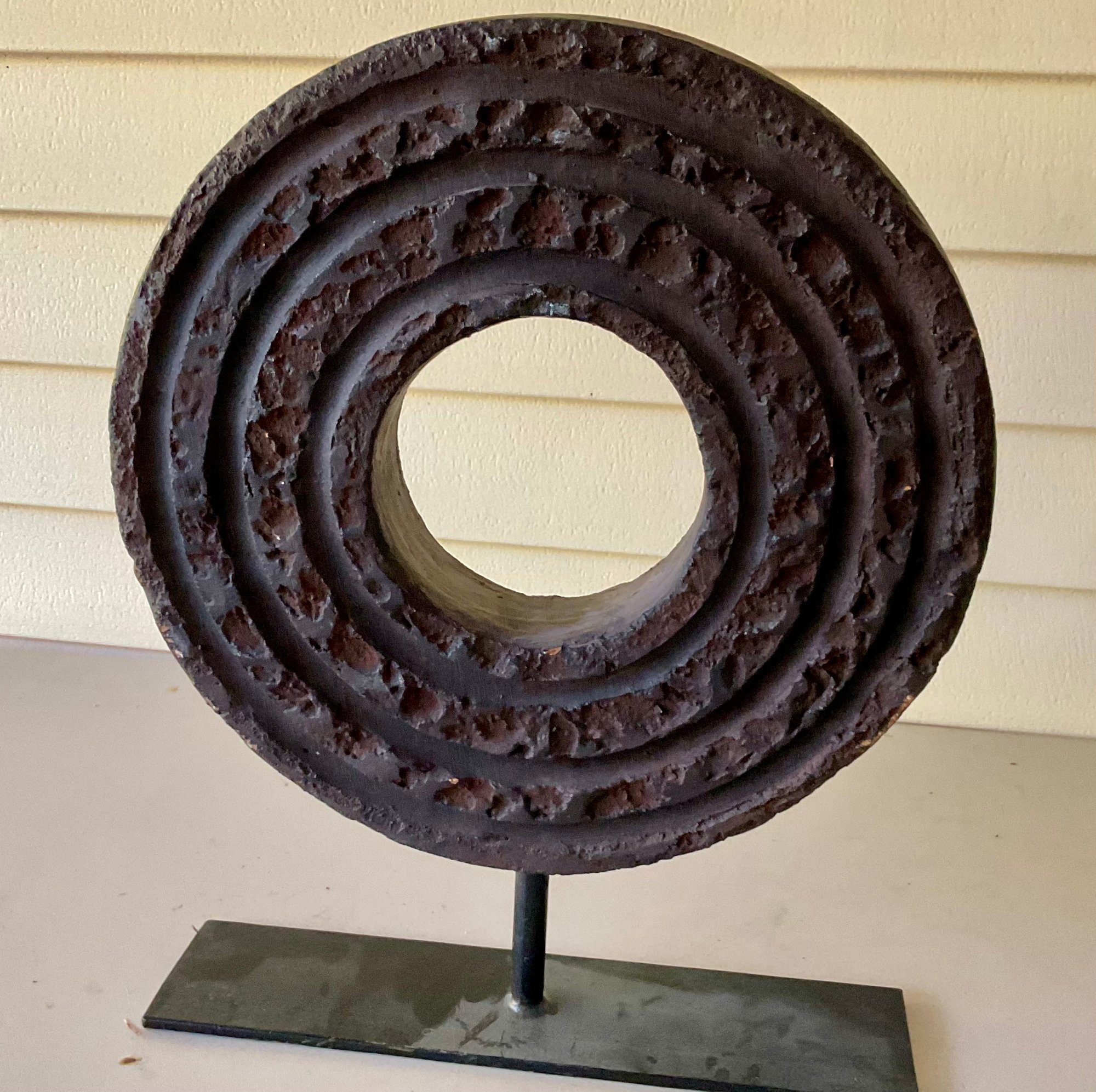 In the Brutalist style, this sculpture is modern and primitive. Great display peice