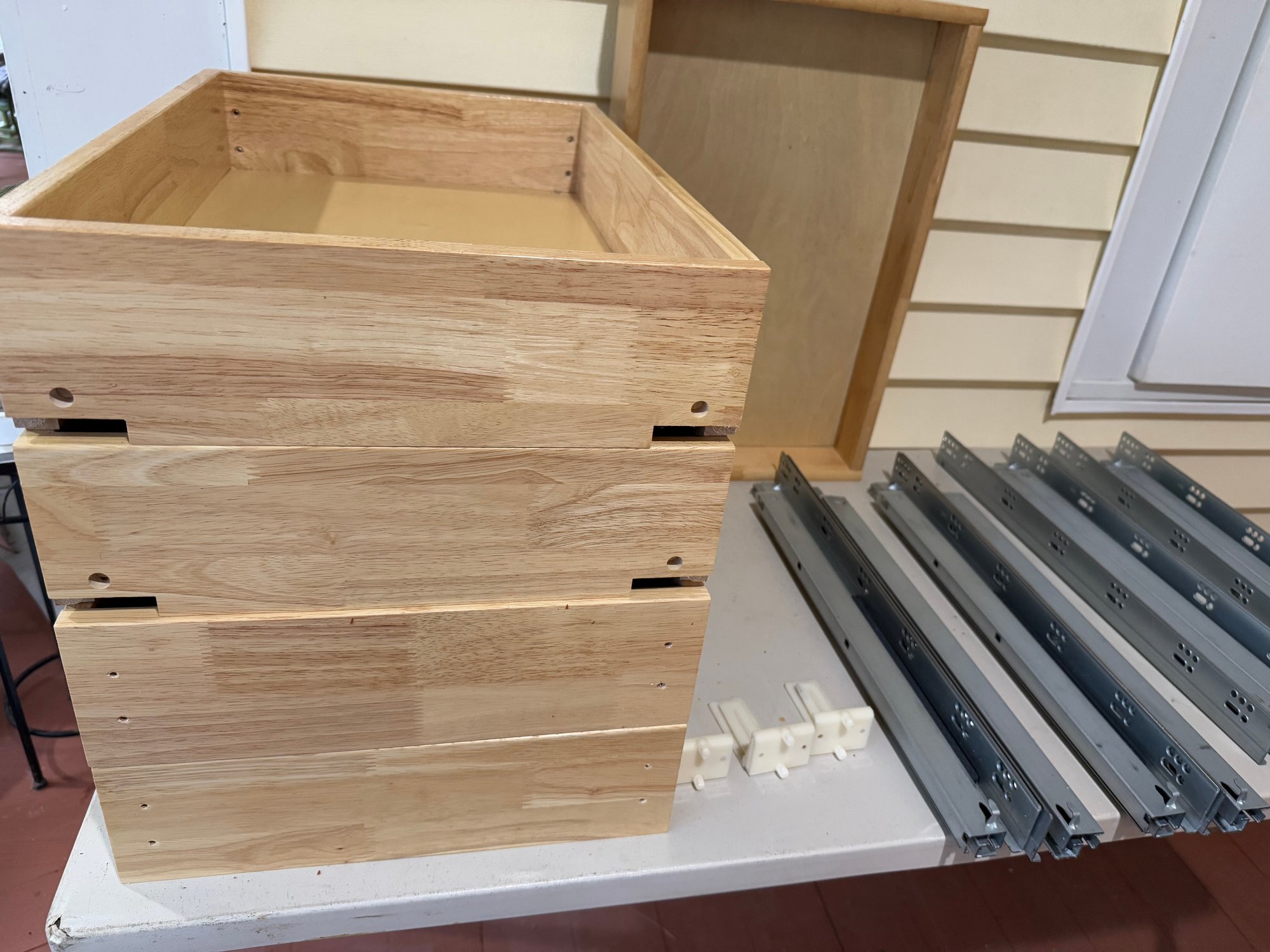 New construction wood drawer boxes, dovetail construction with softclose, extendable slides. Never used