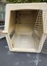 Large crate in good condition but needs connector pieces such as bolts or zip ties to keep top and bottom attached