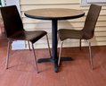 Formica Top 3o inch wide table with wrought iron base. Chairs are chrome with bentwood seats