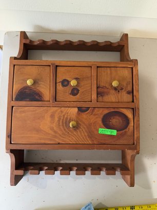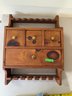 Wood Rack with Individual Jars for tobacco and notches for pipes.