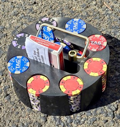Vintage Poker Chips in a carousel style caddy.