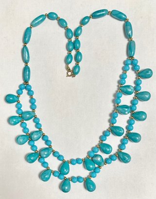 Double strand of Turquoise beads with gold spacer beads