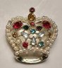Beautiful pin with tiny faux pearls (1 missing) and several multi-colored rhinestones.
