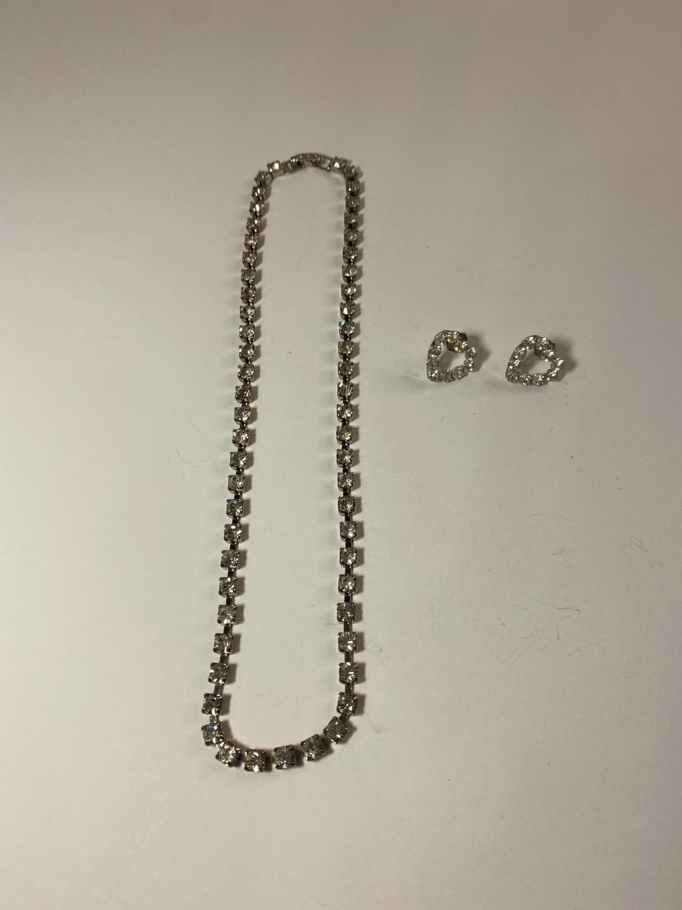 Rhinestone Chocker necklace and heart shaped pierced earrings
