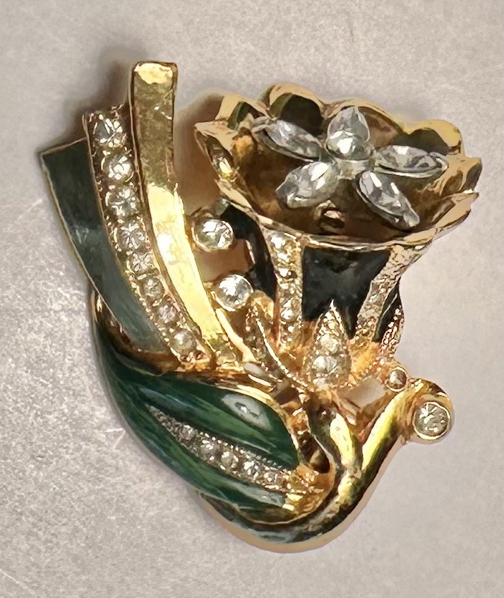 Black and green enamel with clear rhinestones