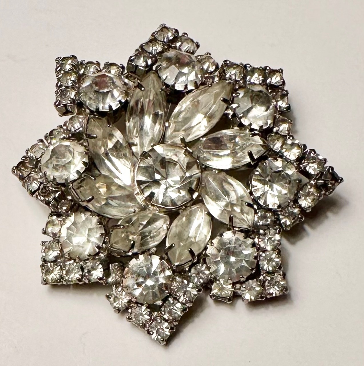 Brooch of multi-shaped clear rhinestones