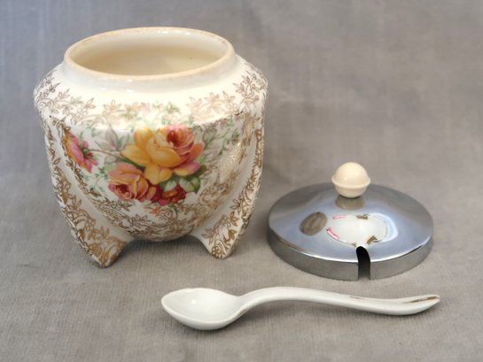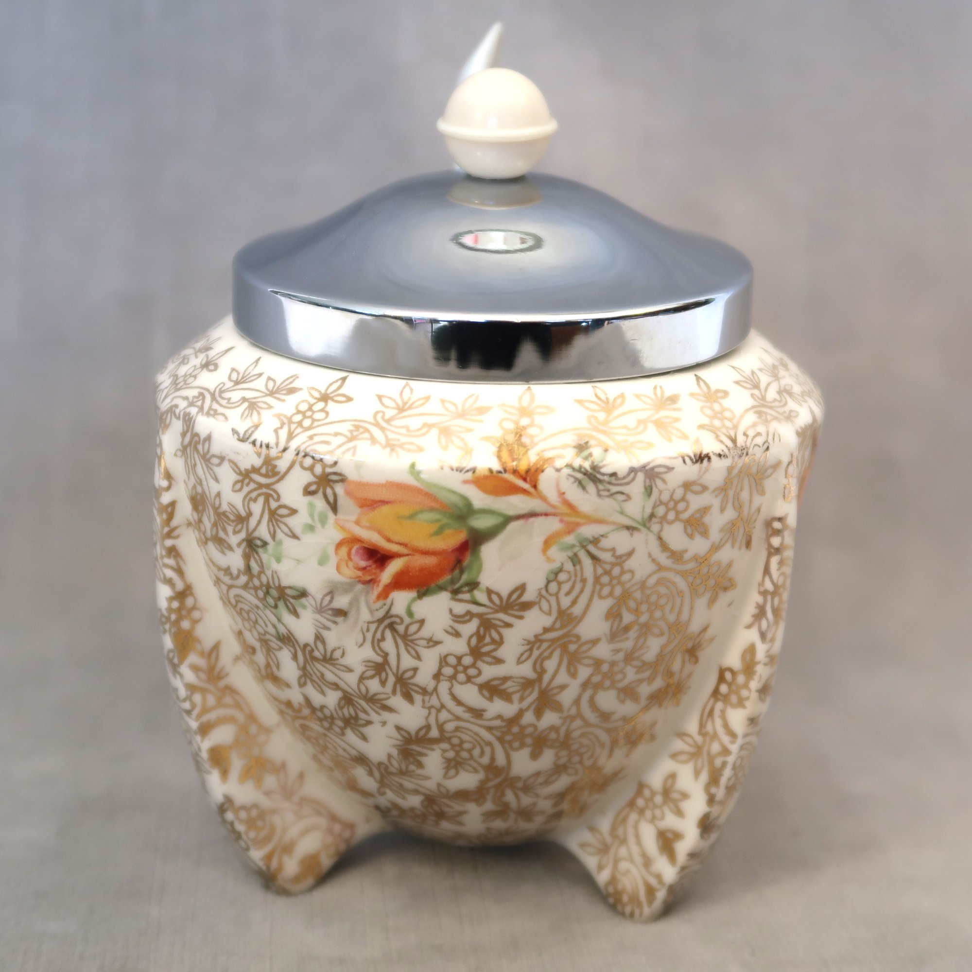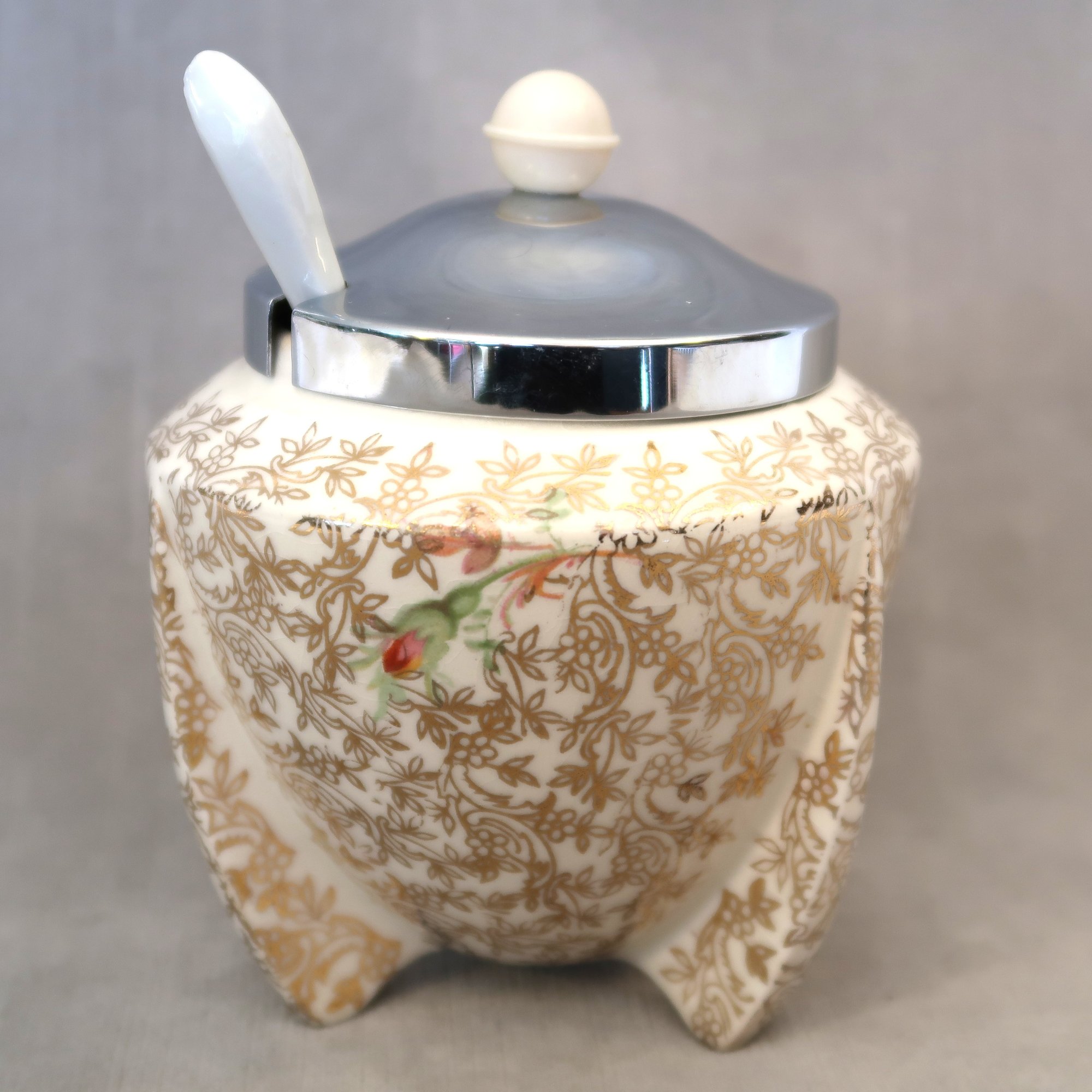 Vintage Art Deco A J Wilkinson Celtic Rose Lidded Preserve Pot with Spoon