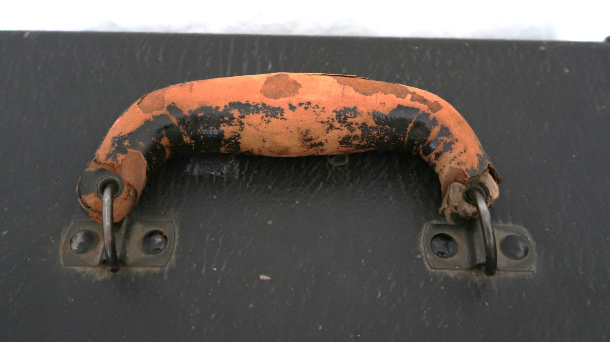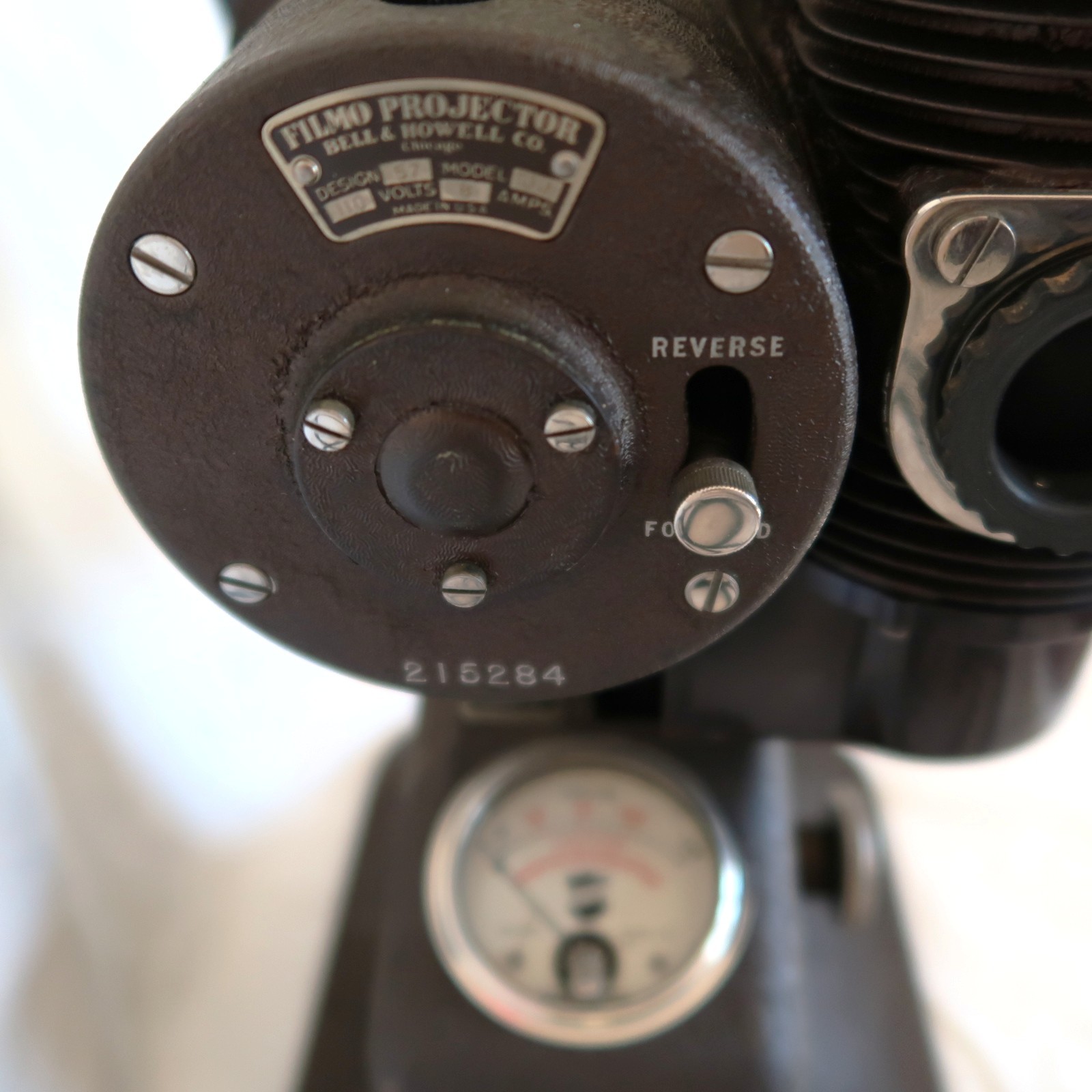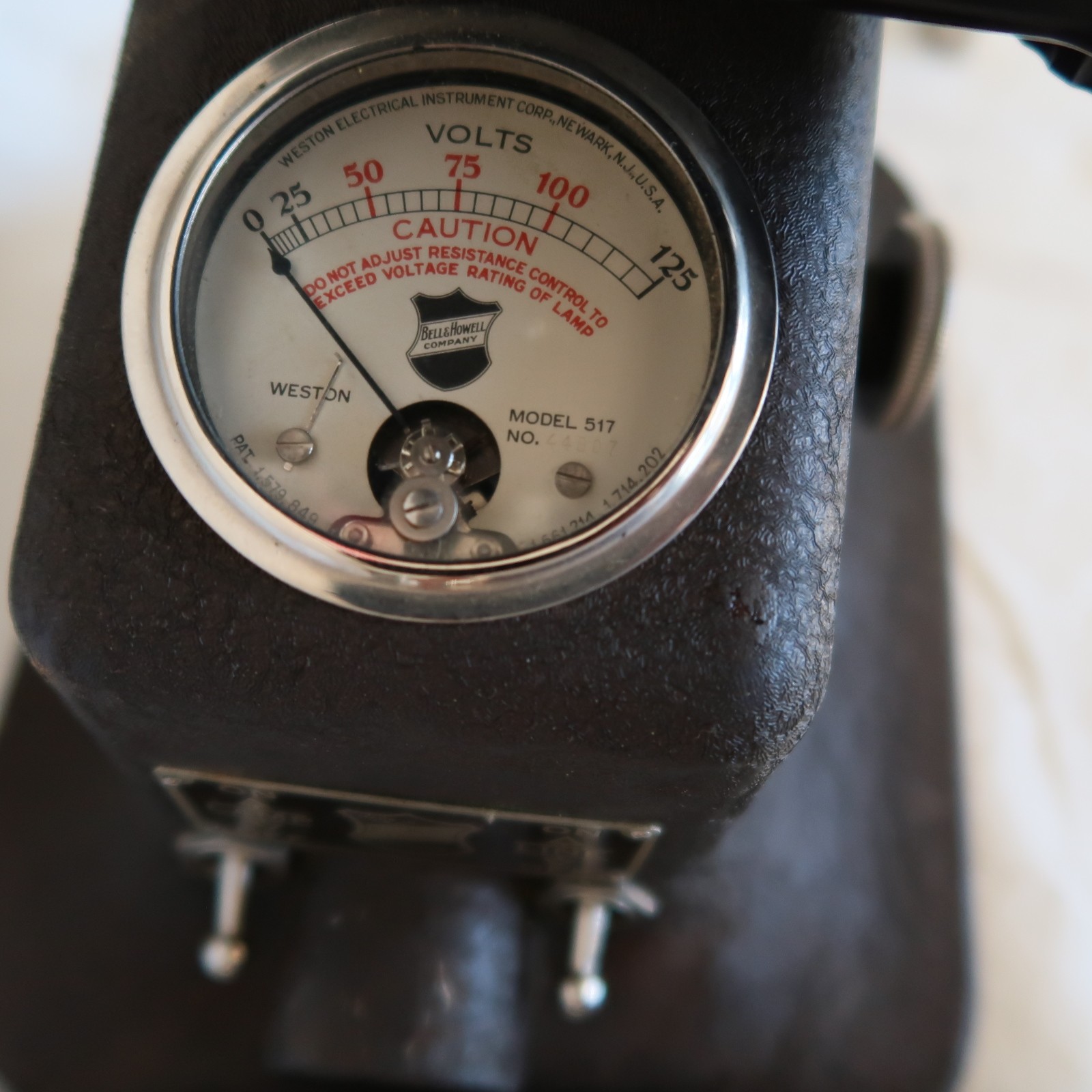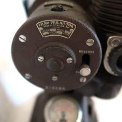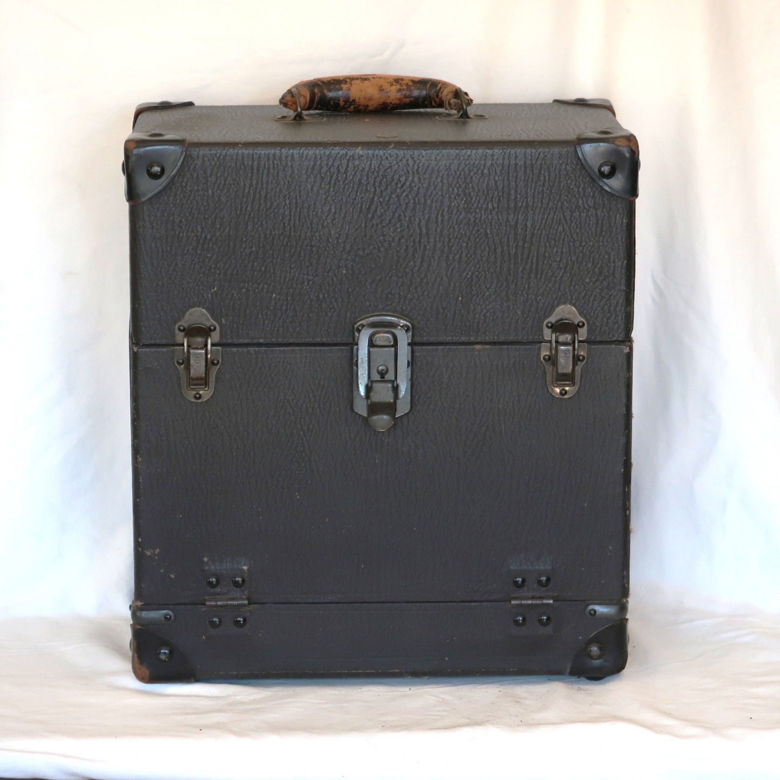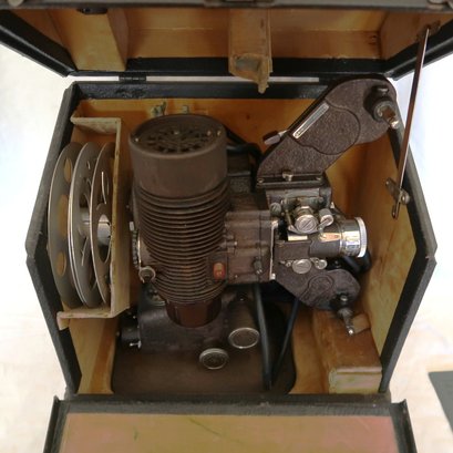 Antique Film projector in original storage/carry case. Leather on case corners and handle is wearing off.