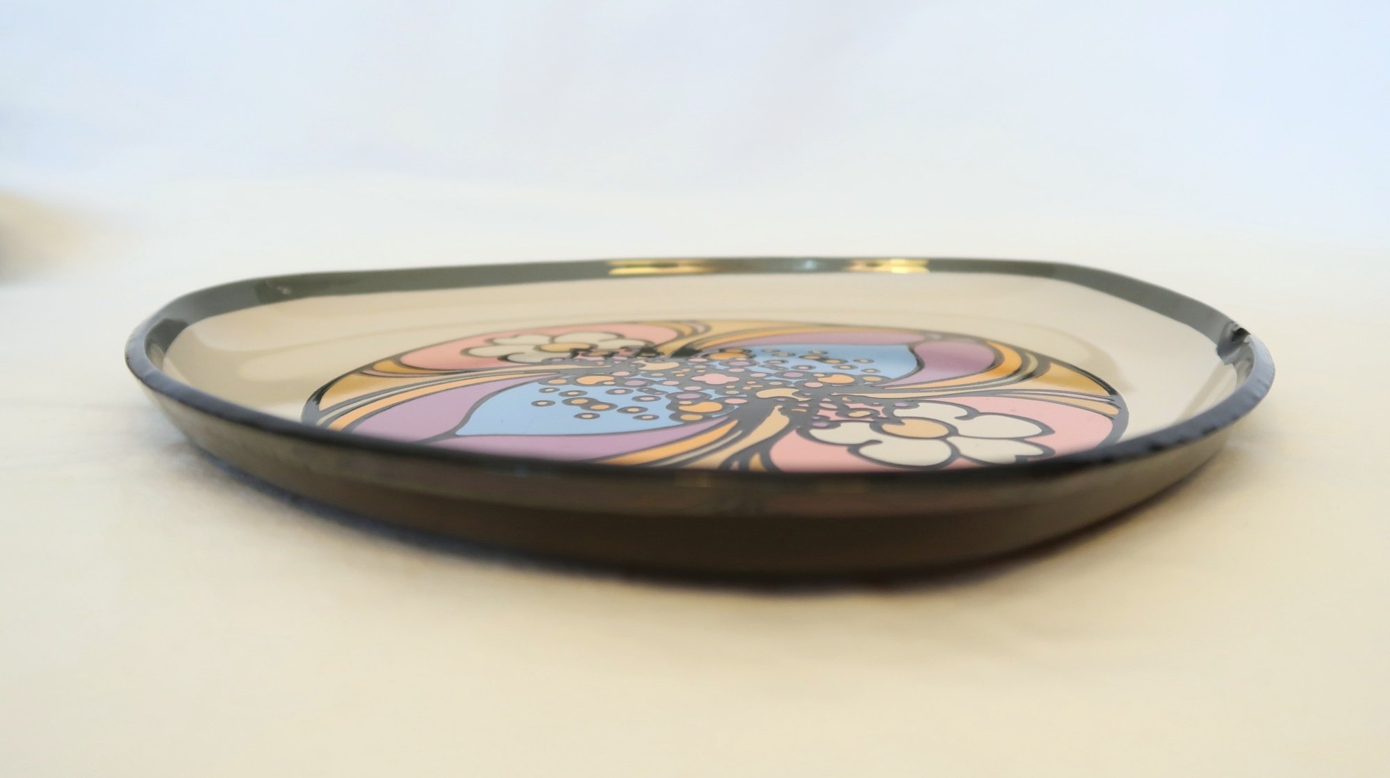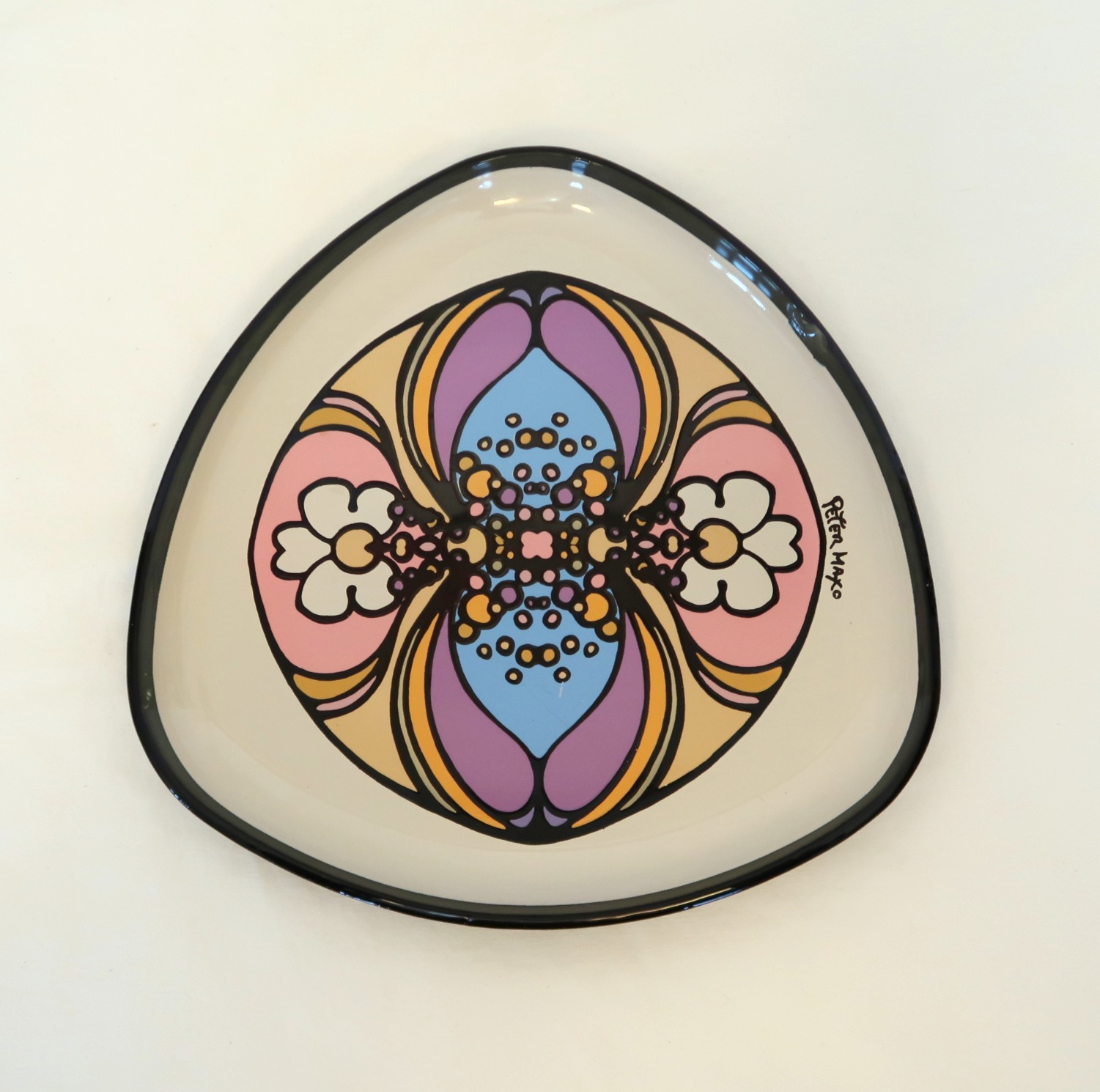 Psychedelic Flower Reflection Glass Plate Iroquois Pop Art RARE