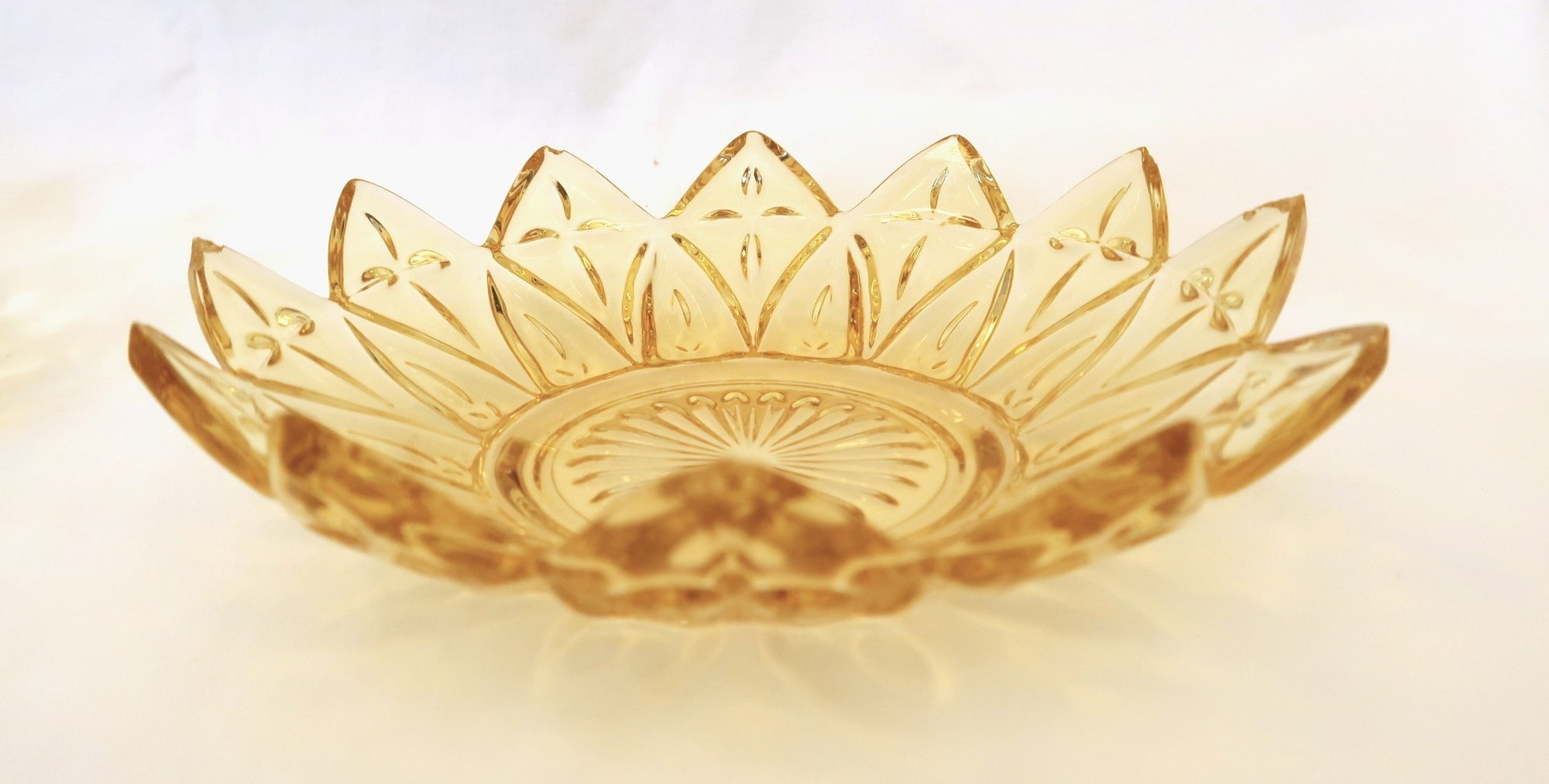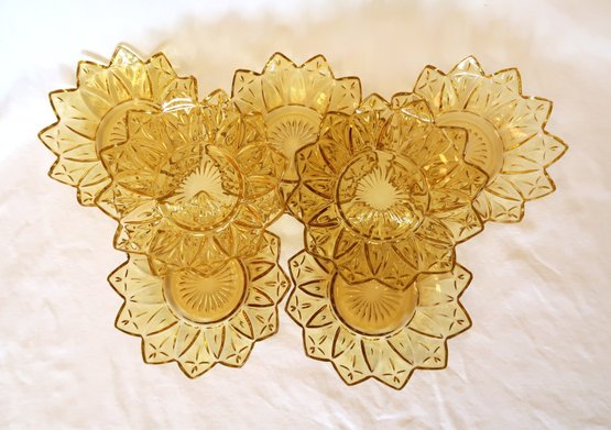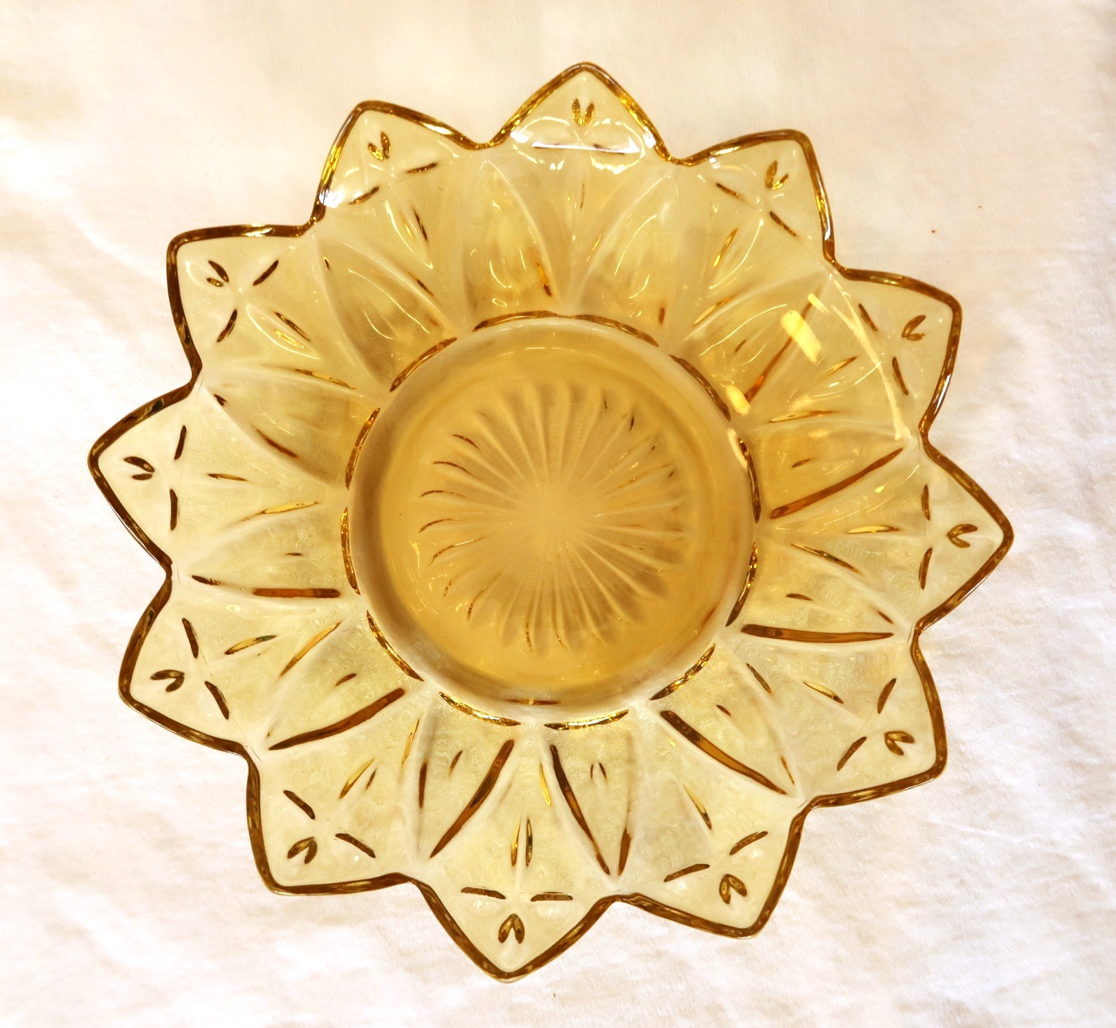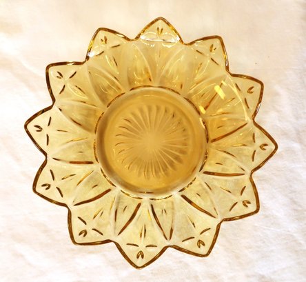 Federal Glass Yellow Starburst Petal Sunflower Serving Dish Amber Gold Plates