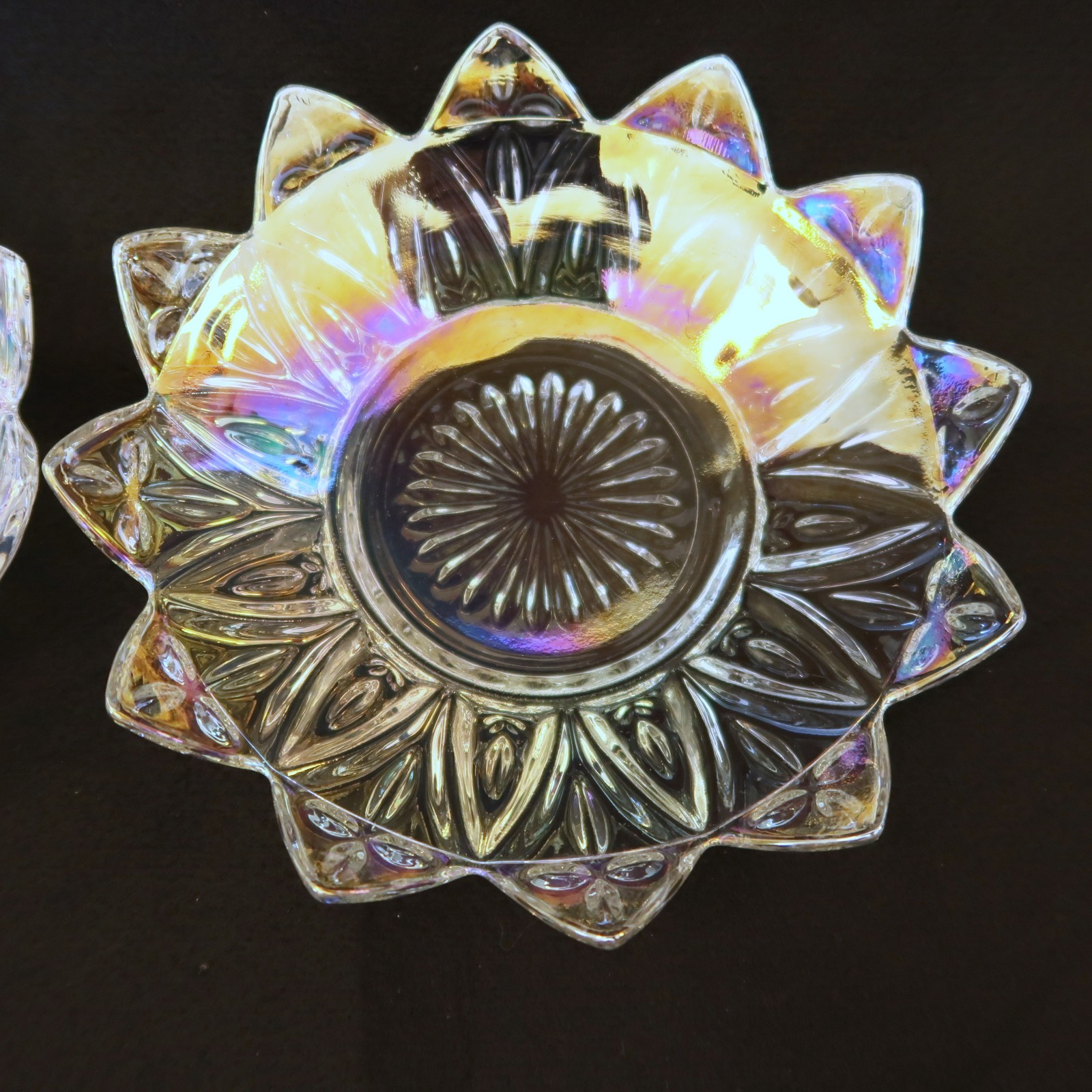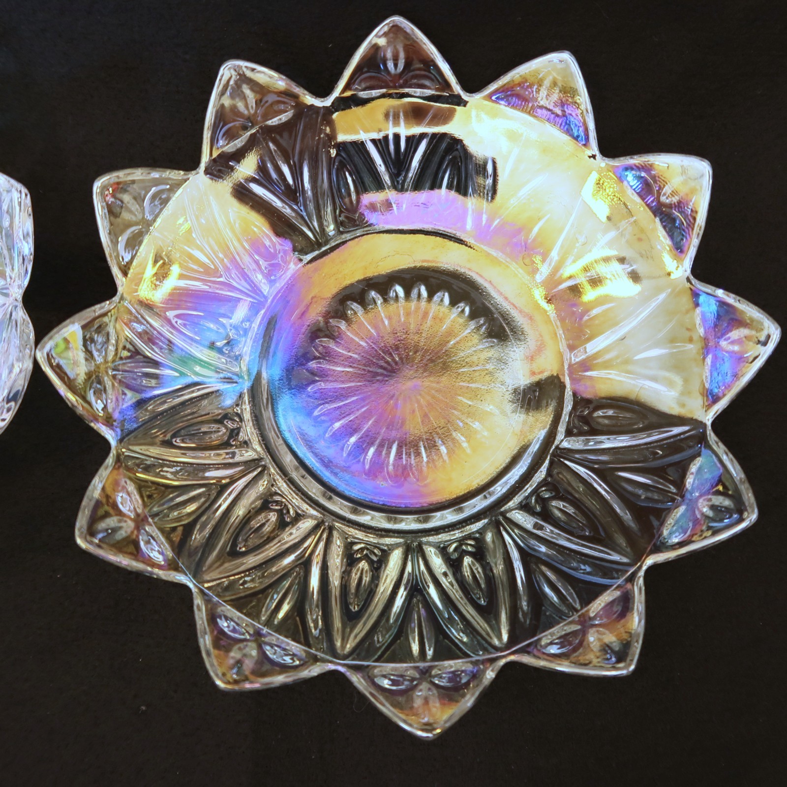 Vintage Federal Glass Petal Design White Carnival Flashed Glass plate