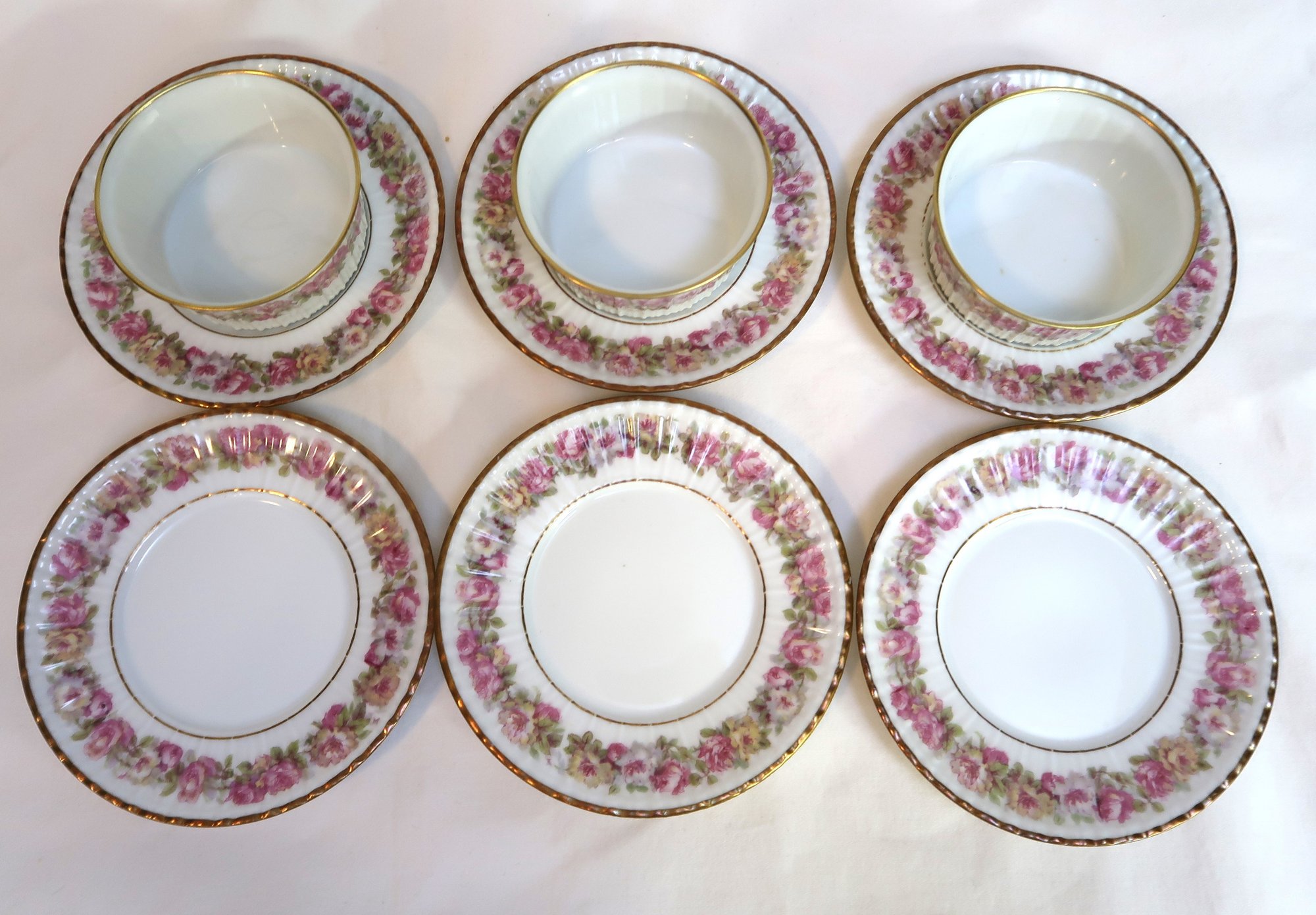 GDA Flowers Set Of 6 Saucers & 3 Ramekins Pretty Pink Floral Pattern